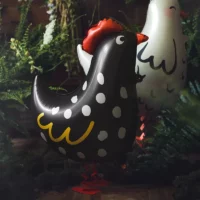 Balon w kształcie uroczego, czarnego koguta z harmonijkowymi nóżkami. Idealnie sprawdzi się jako oprawa przyjęcia wielkanocnego bądź urodzinowego.