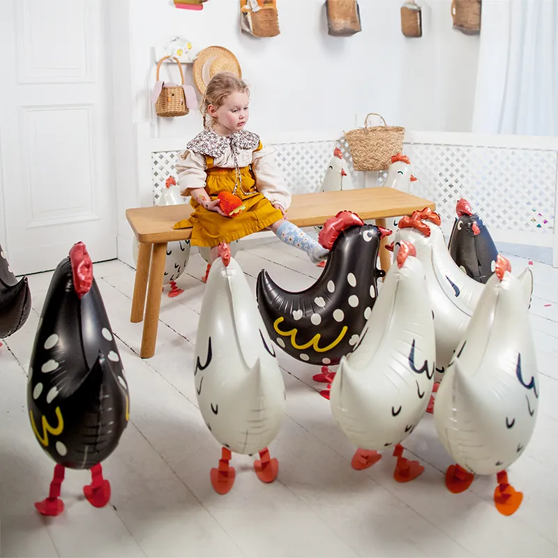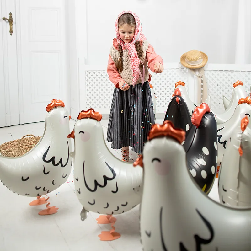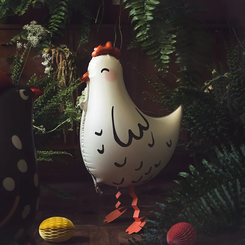 Balon w kształcie uroczej, białej kurki z harmonijkowymi nóżkami. Idealnie sprawdzi się jako oprawa przyjęcia wielkanocnego bądź urodzinowego.