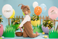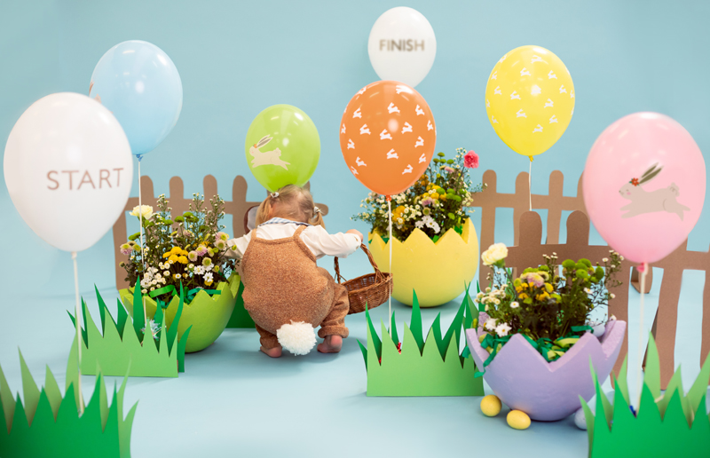 Balony lateksowe z kolorowymi nadrukami w motywie wielkanocnym, z króliczkami w roli głównej. Można ich użyć do ozdobienia miejsca, w którym ma się odbyć gra szukania prezentów wielkanocnych. Balony mogą posłużyć jako urozmaicenie w postaci wskazówek, które pomogą dzieciom znaleźć upominki. Zestaw zawiera balony z nadrukami „START” oraz „FINISH”, którymi możemy stworzyć trasę poszukiwania prezentów.