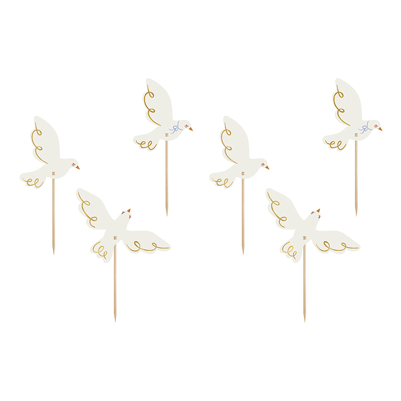Dekoracje do muffinek z symbolami gołębi to świetna ozdoba wypieków, które znajdą się na stole podczas Twojego przyjęcia! Umieszcza się na je muffinkach, można ich również użyć jako ozdobę do candy baru.