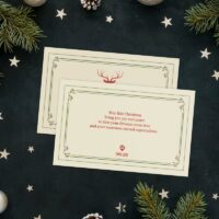 Firmowe bileciki świąteczne CZERWONY RENIFER z Twoim logo
