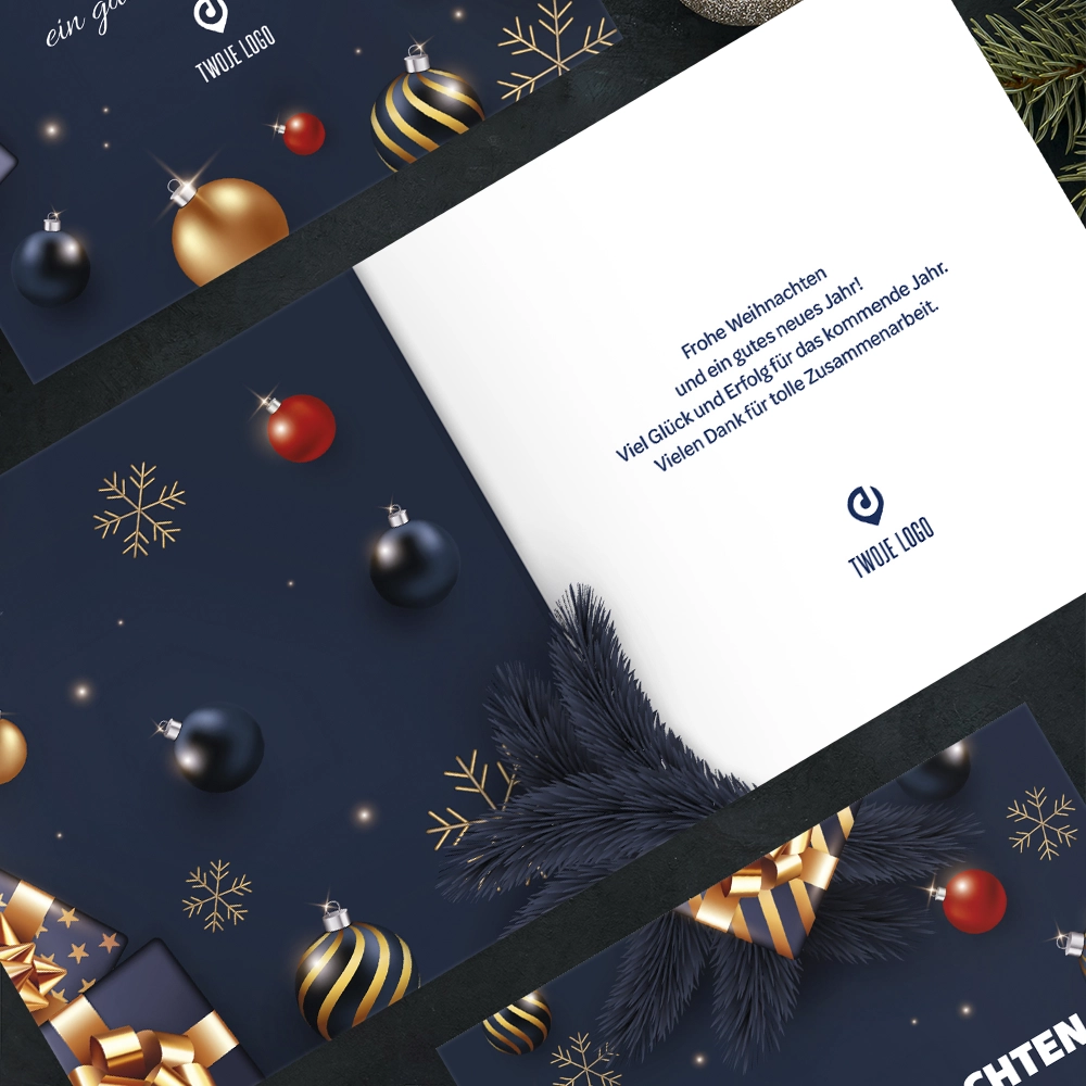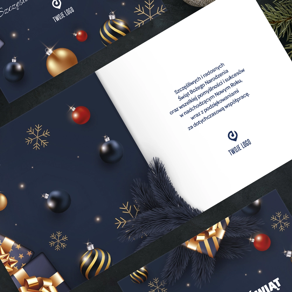 Firmowe kartki świąteczne z logo GRANATOWY SZYK