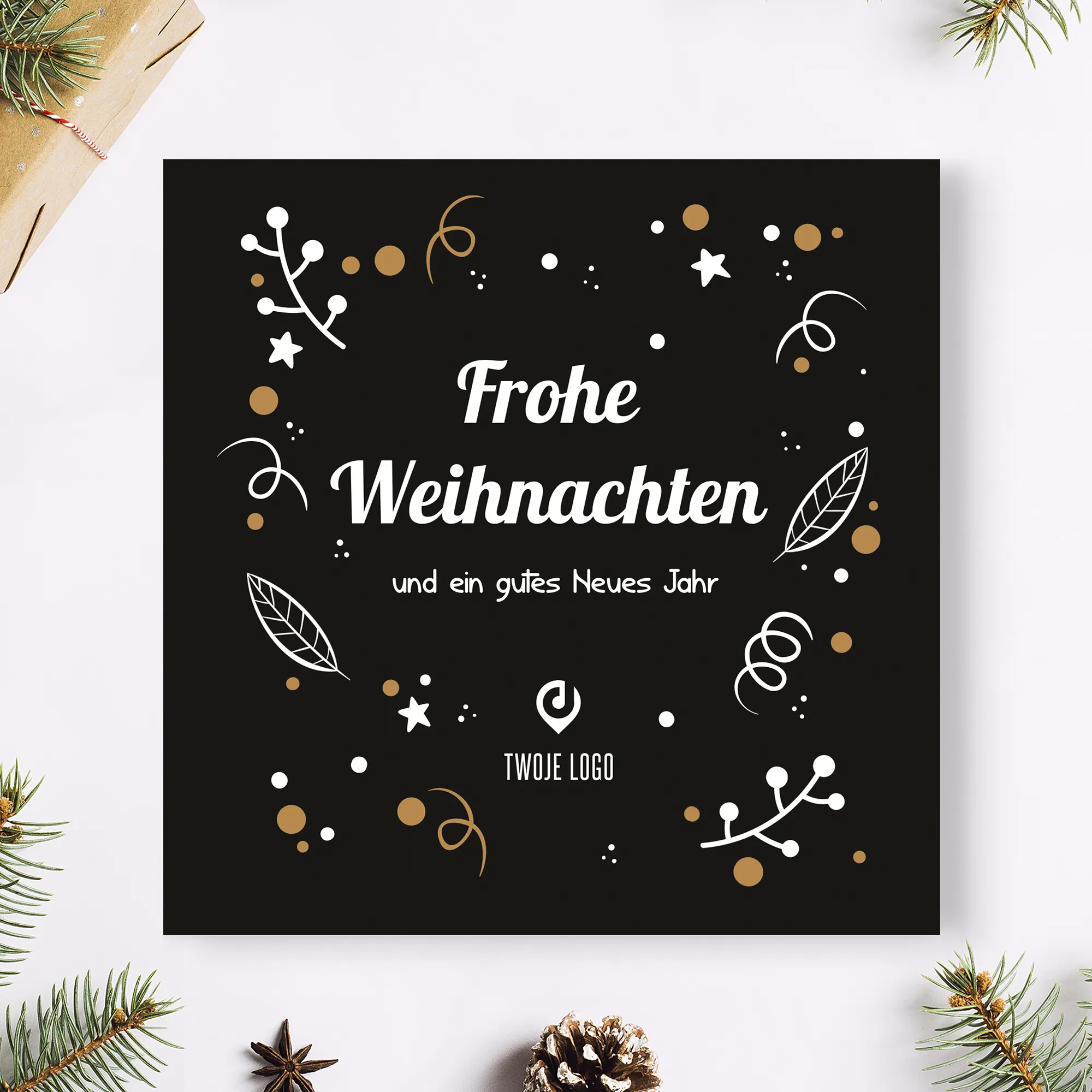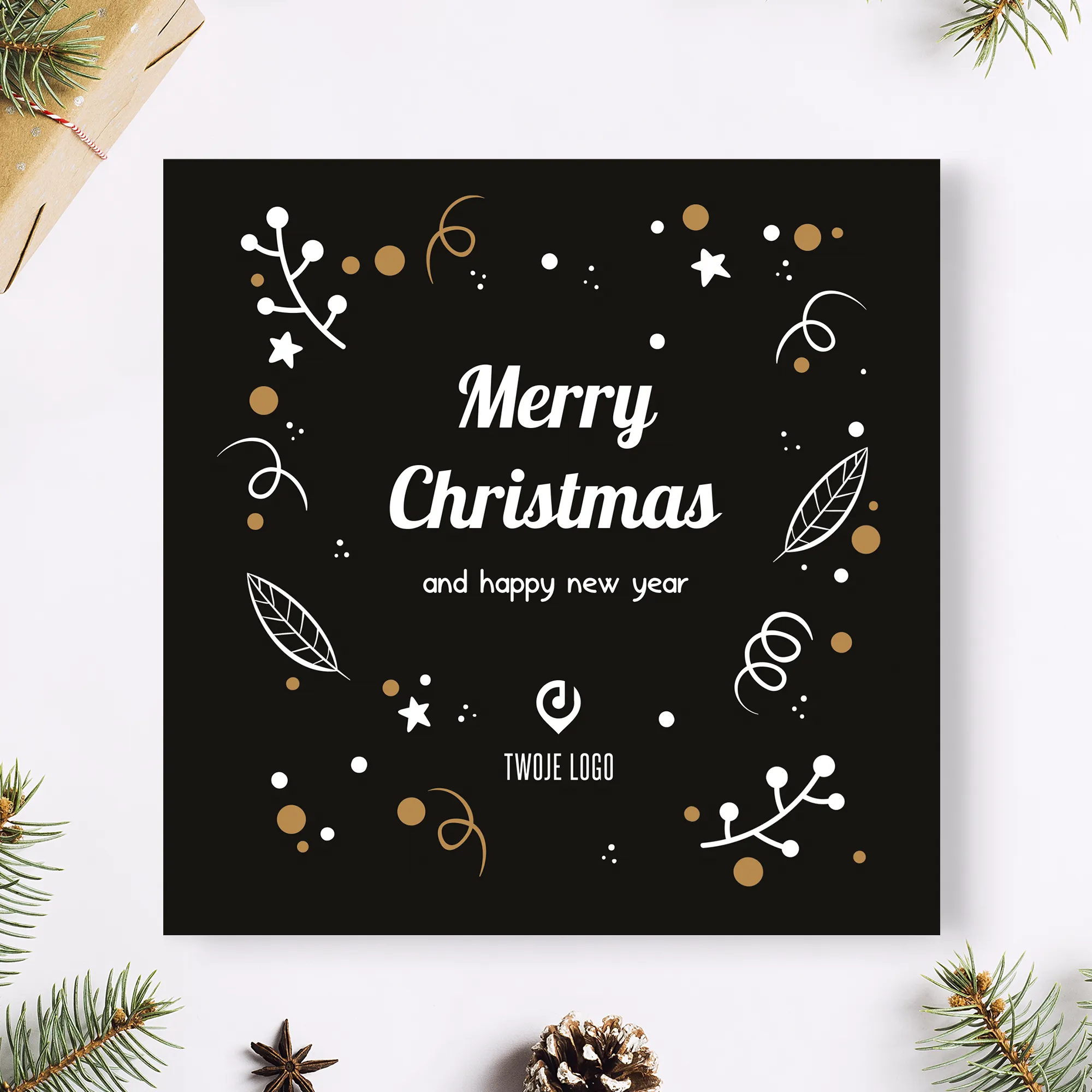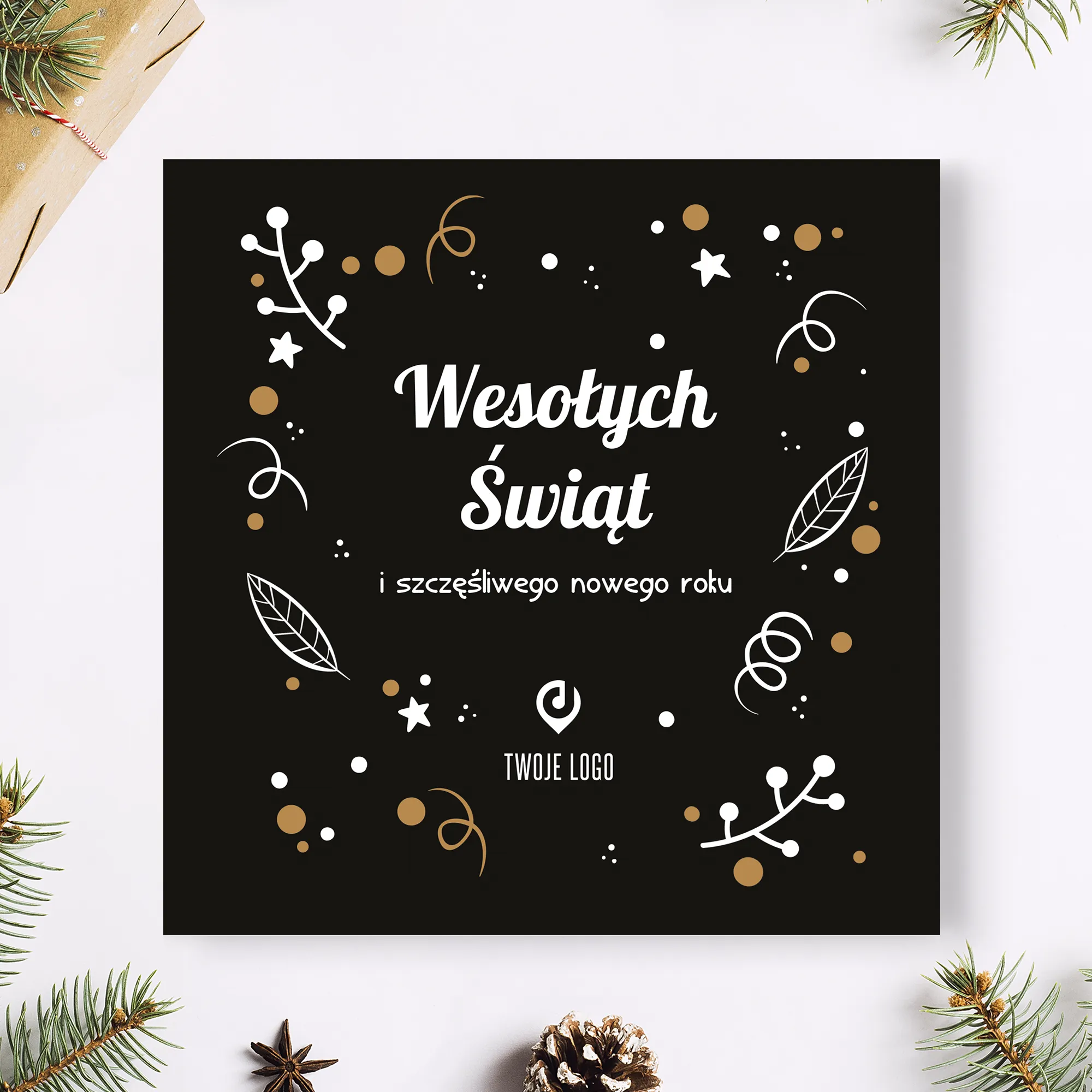 Personalizowane kartki świąteczne z miejscem na logo Twojej firmy.