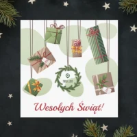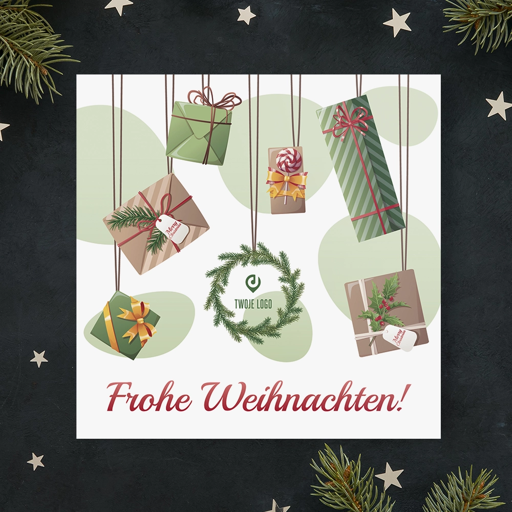 Firmowe kartki świąteczne z logo WISZĄCE PREZENTY