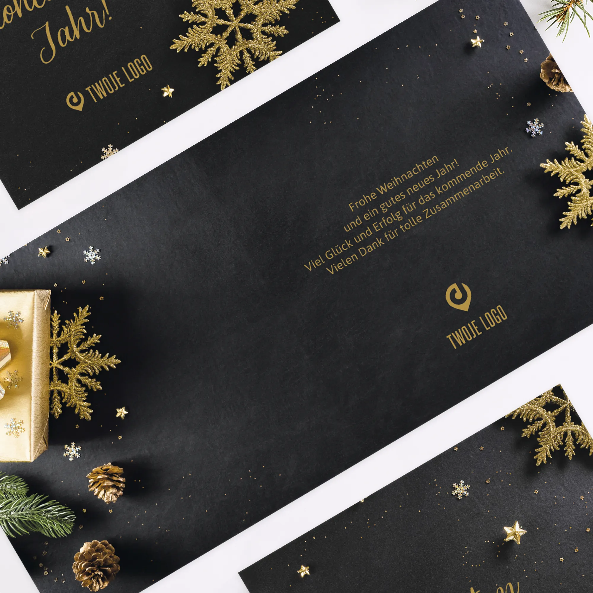 Firmowe kartki świąteczne z logo ZŁOTE ŚWIĘTA – podkreśl prestiż swojej marki z naszymi firmowymi kartkami.