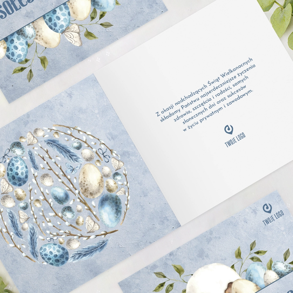 Firmowe kartki Wielkanocne z logo BŁĘKITNA WIELKANOC