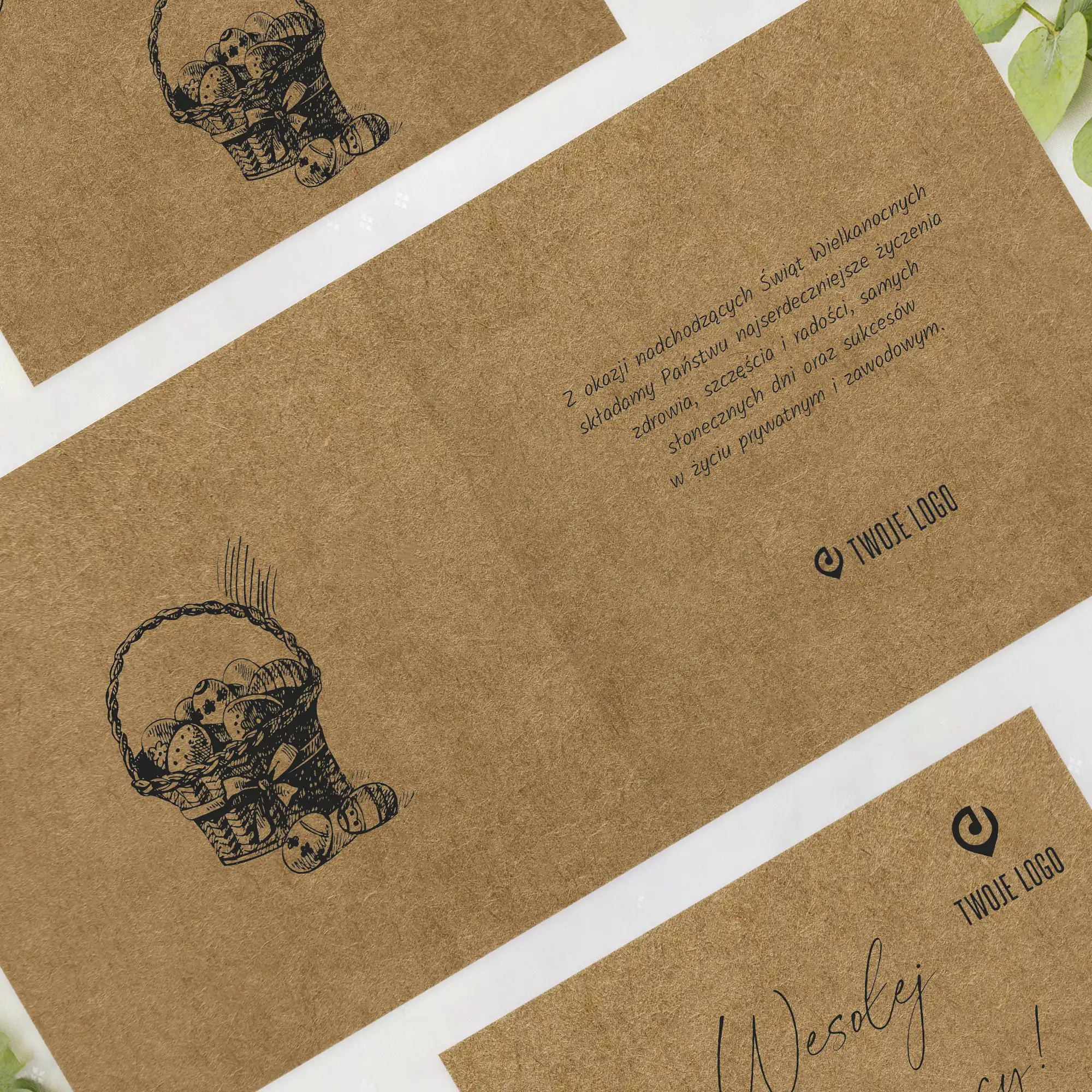 Firmowe kartki Wielkanocne z logo KOSZYCZEK Z PISANKAMI ECO