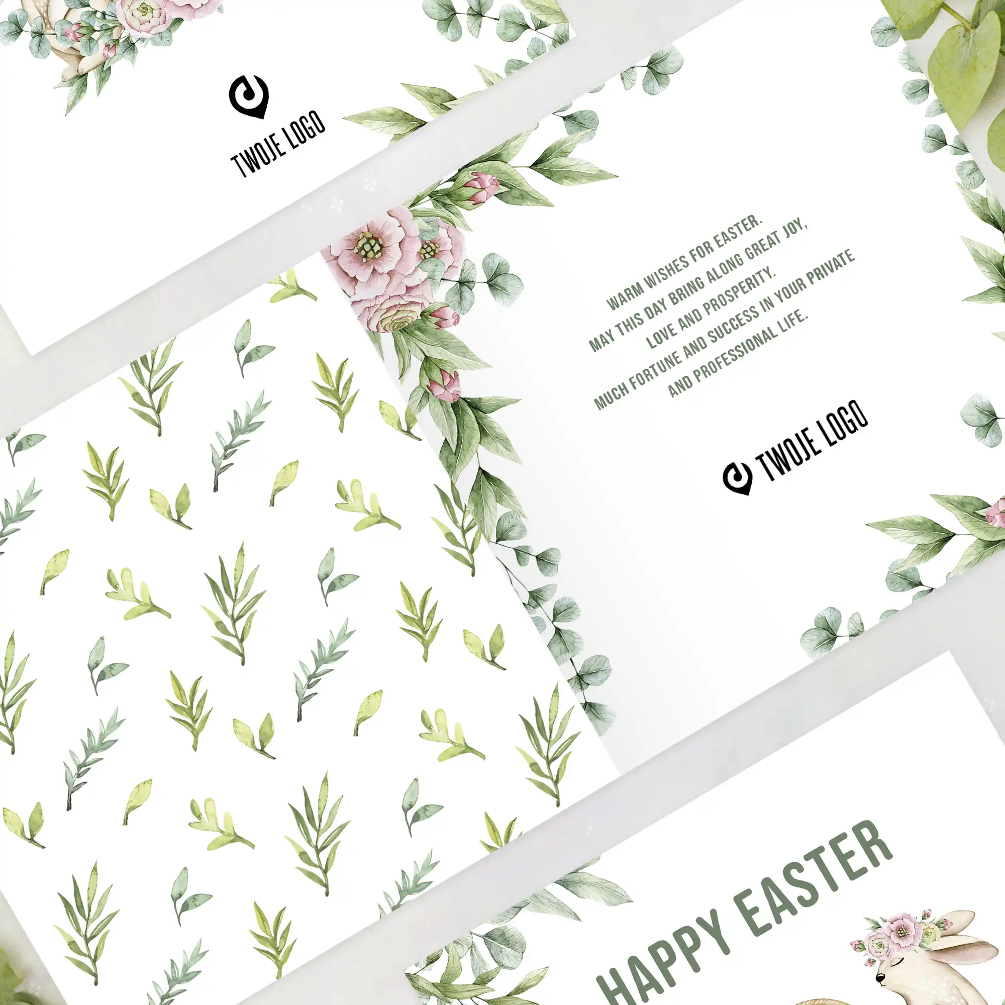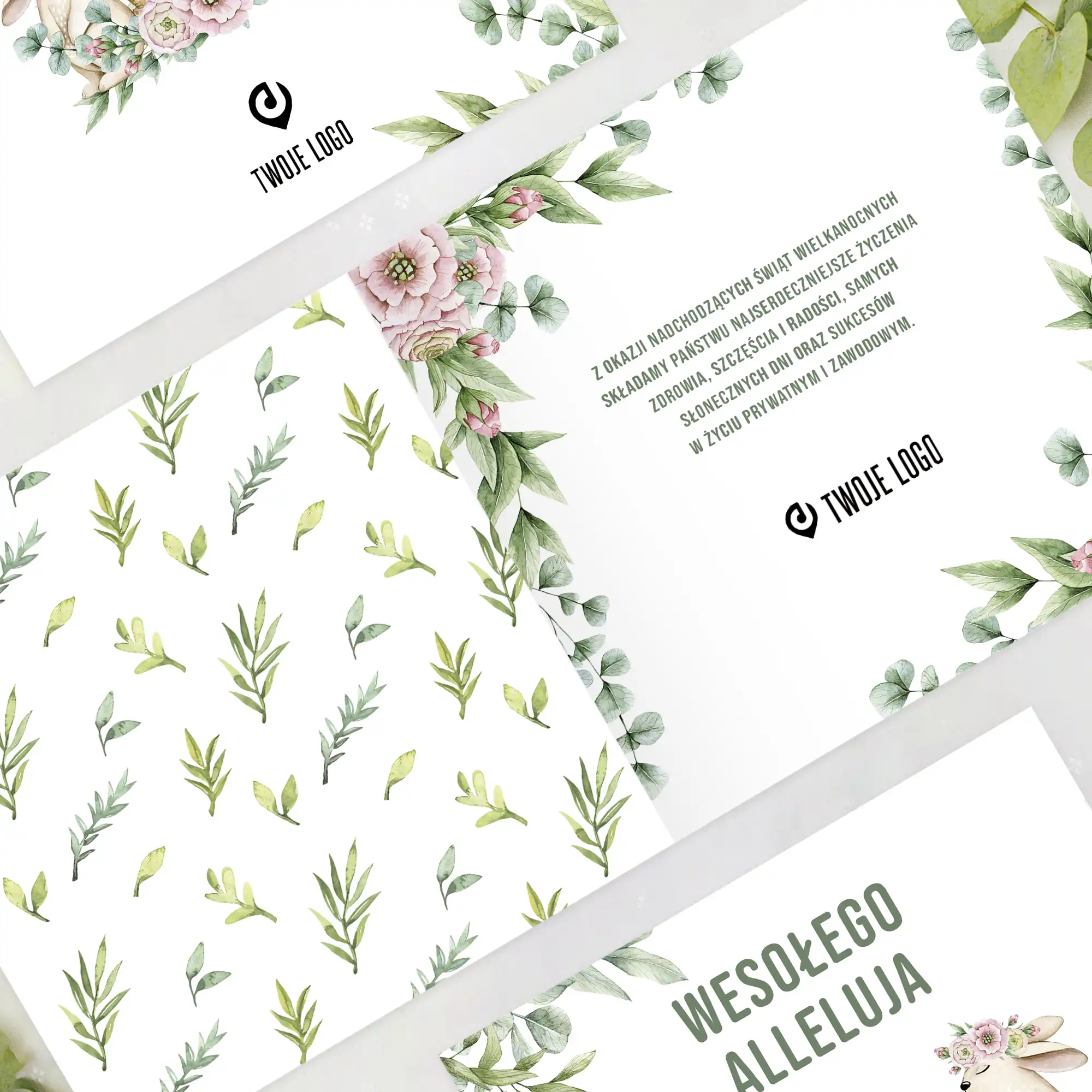 Firmowe kartki Wielkanocne z logo projektowane są w duchu magicznej, świątecznej atmosfery.