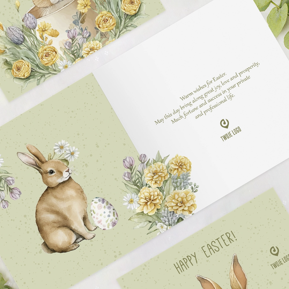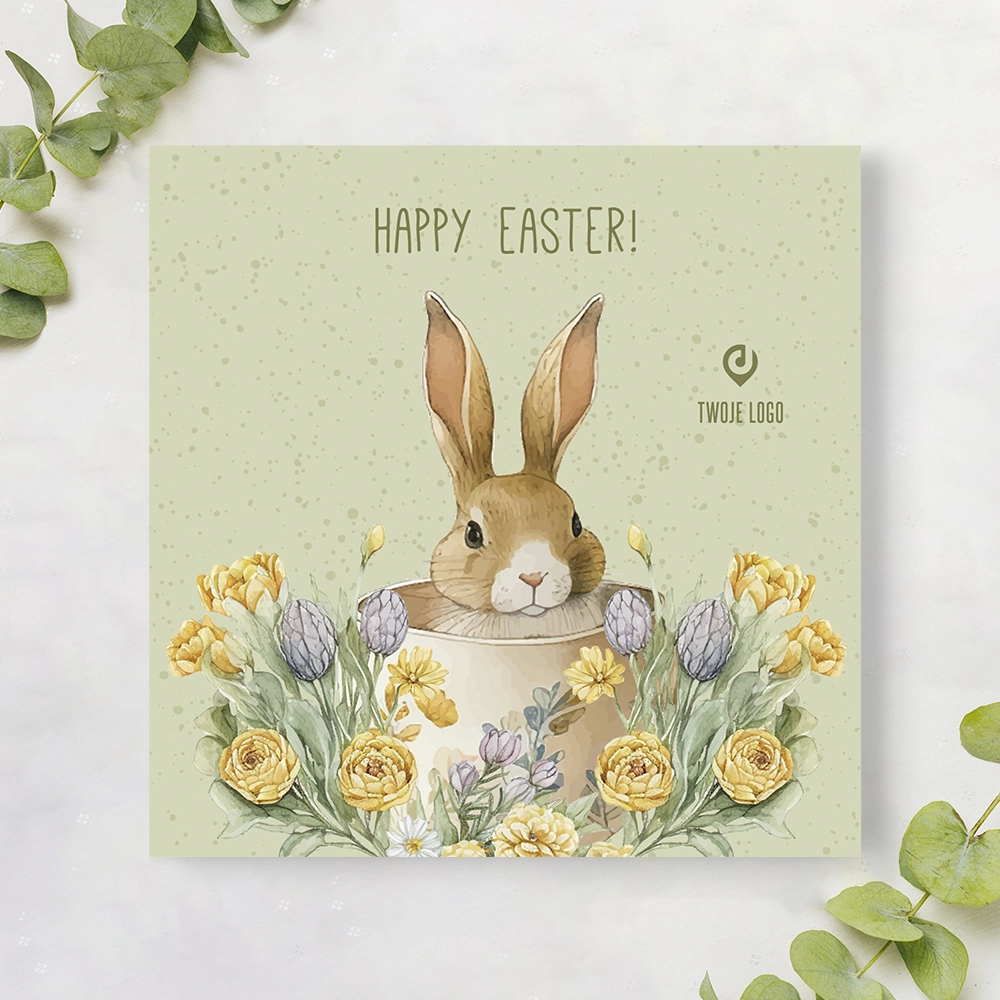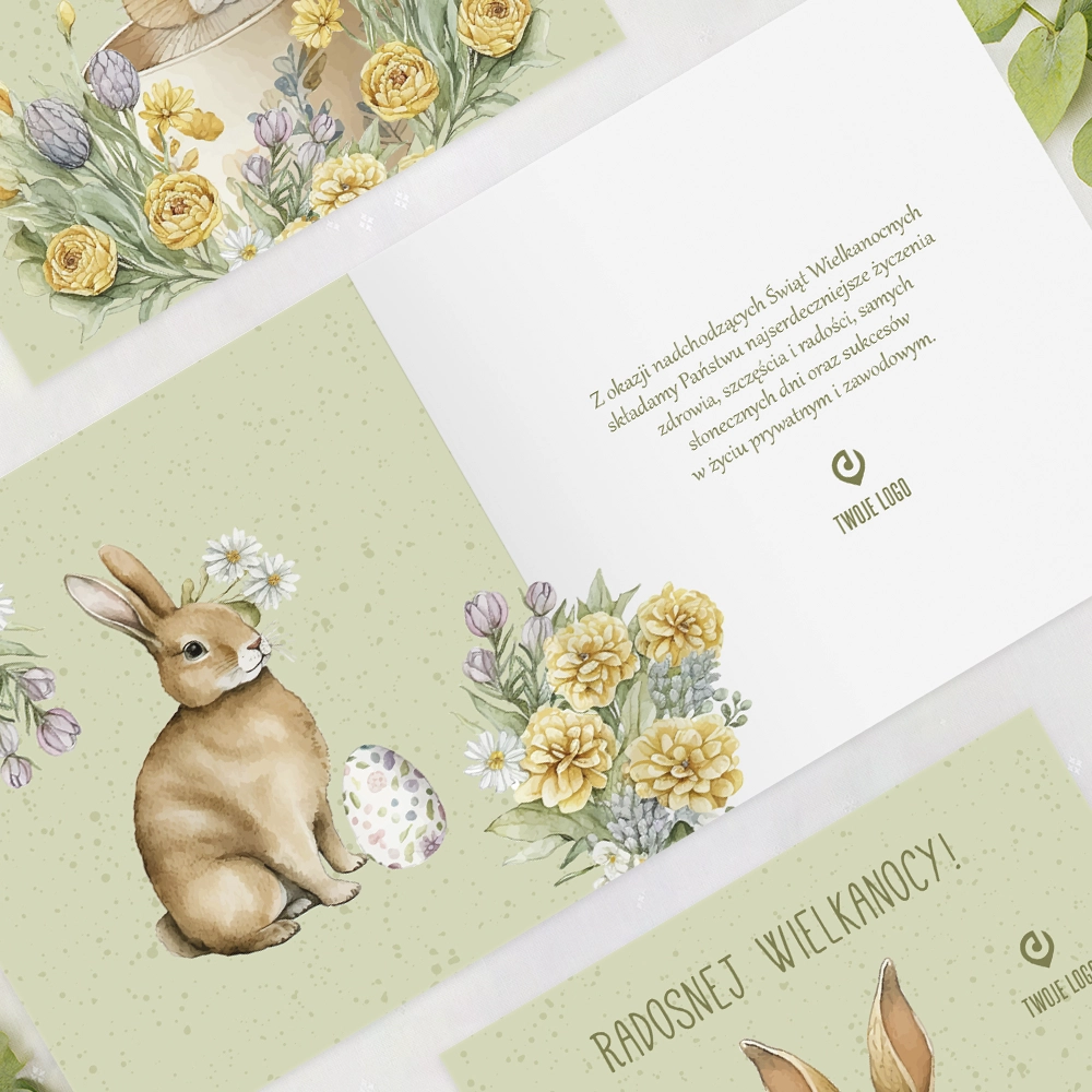 Firmowe kartki Wielkanocne z logo ZAJĄC W KWIATACH