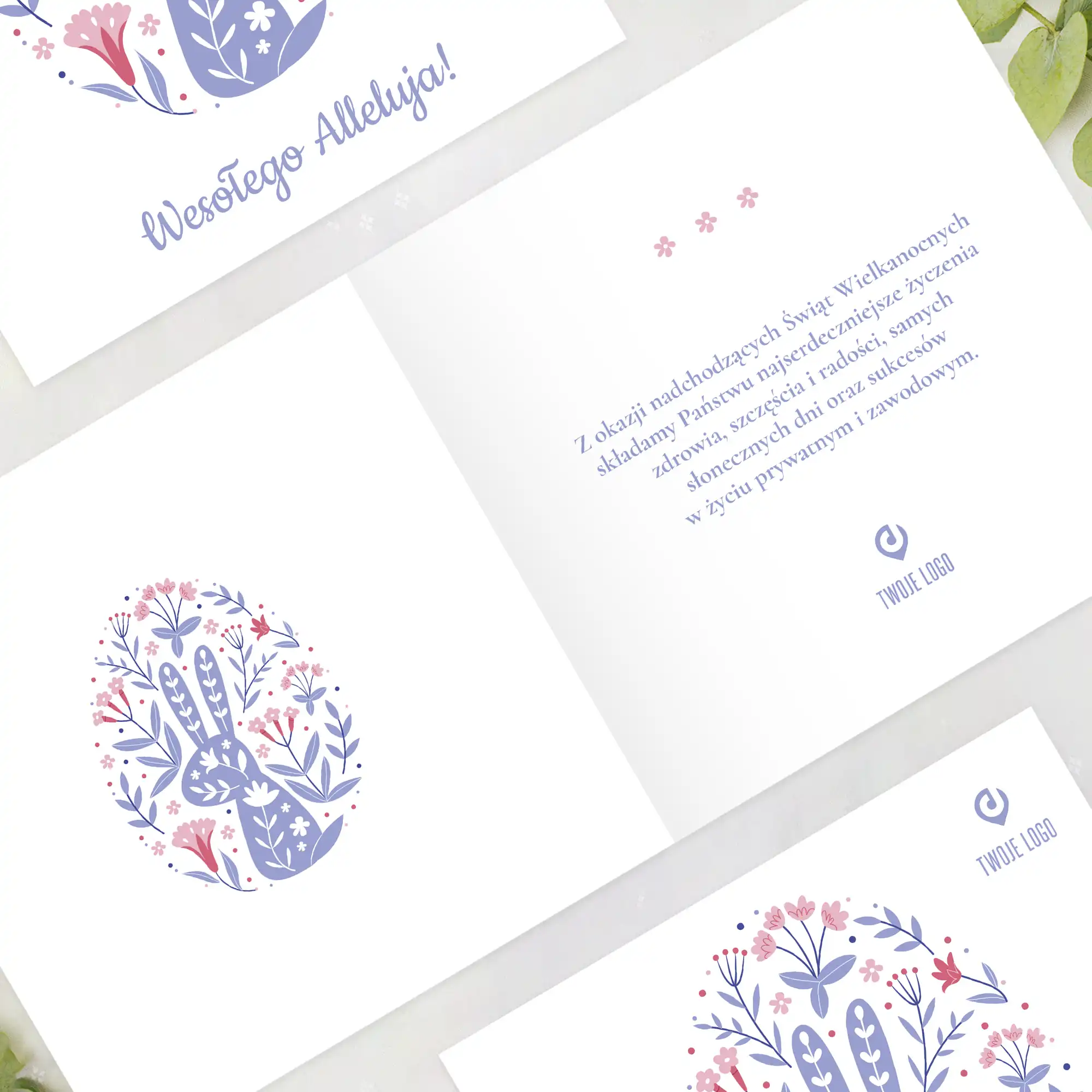 Firmowe kartki Wielkanocne z logo projektowane są w duchu magicznej, świątecznej atmosfery.