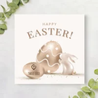 Firmowe kartki Wielkanocne z logo projektowane są w duchu magicznej, świątecznej atmosfery.