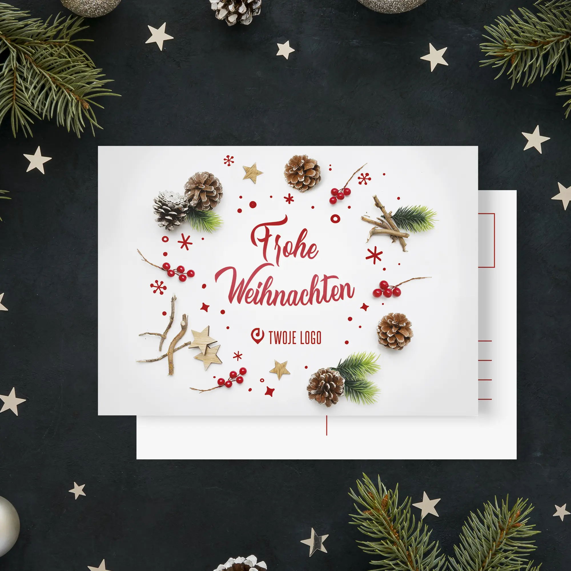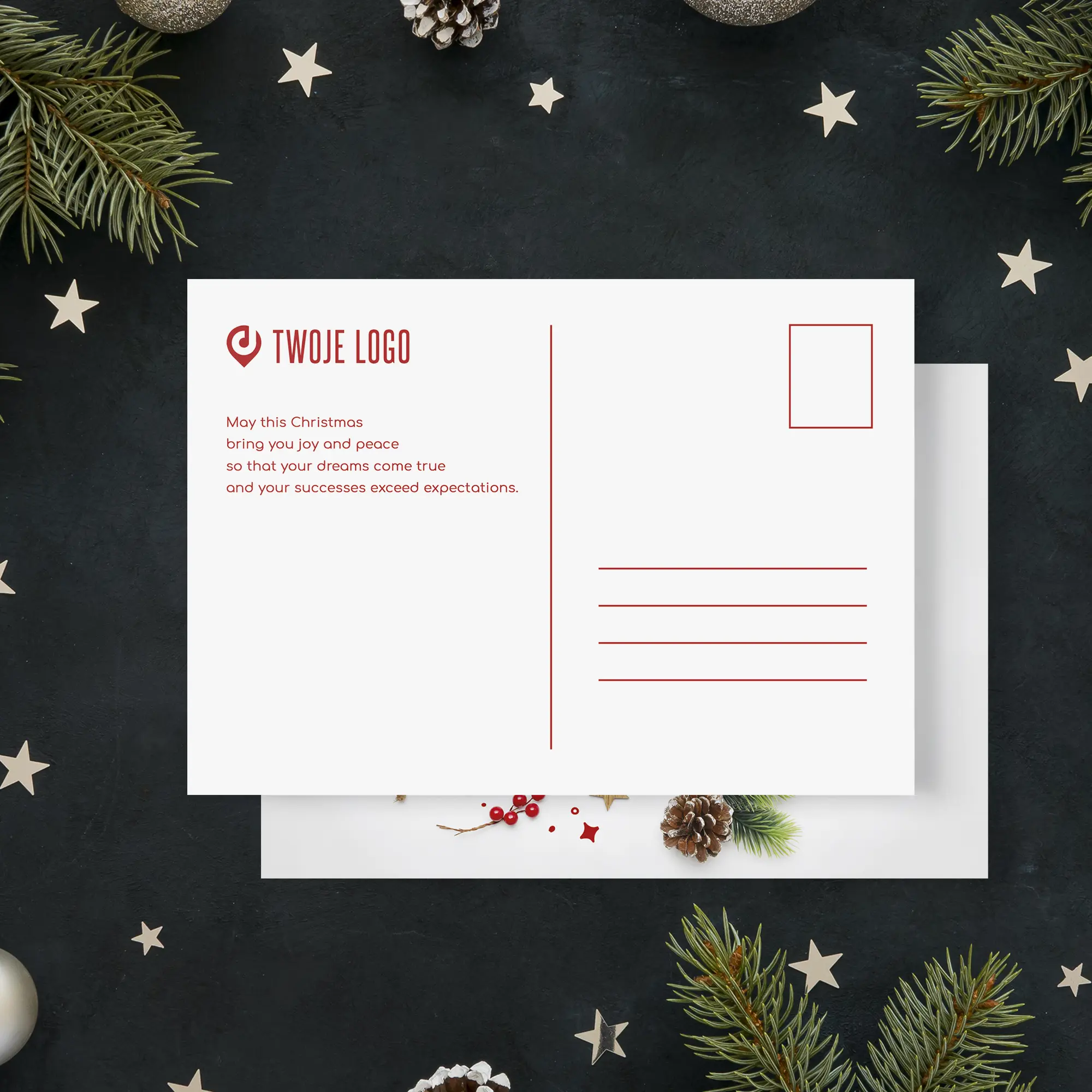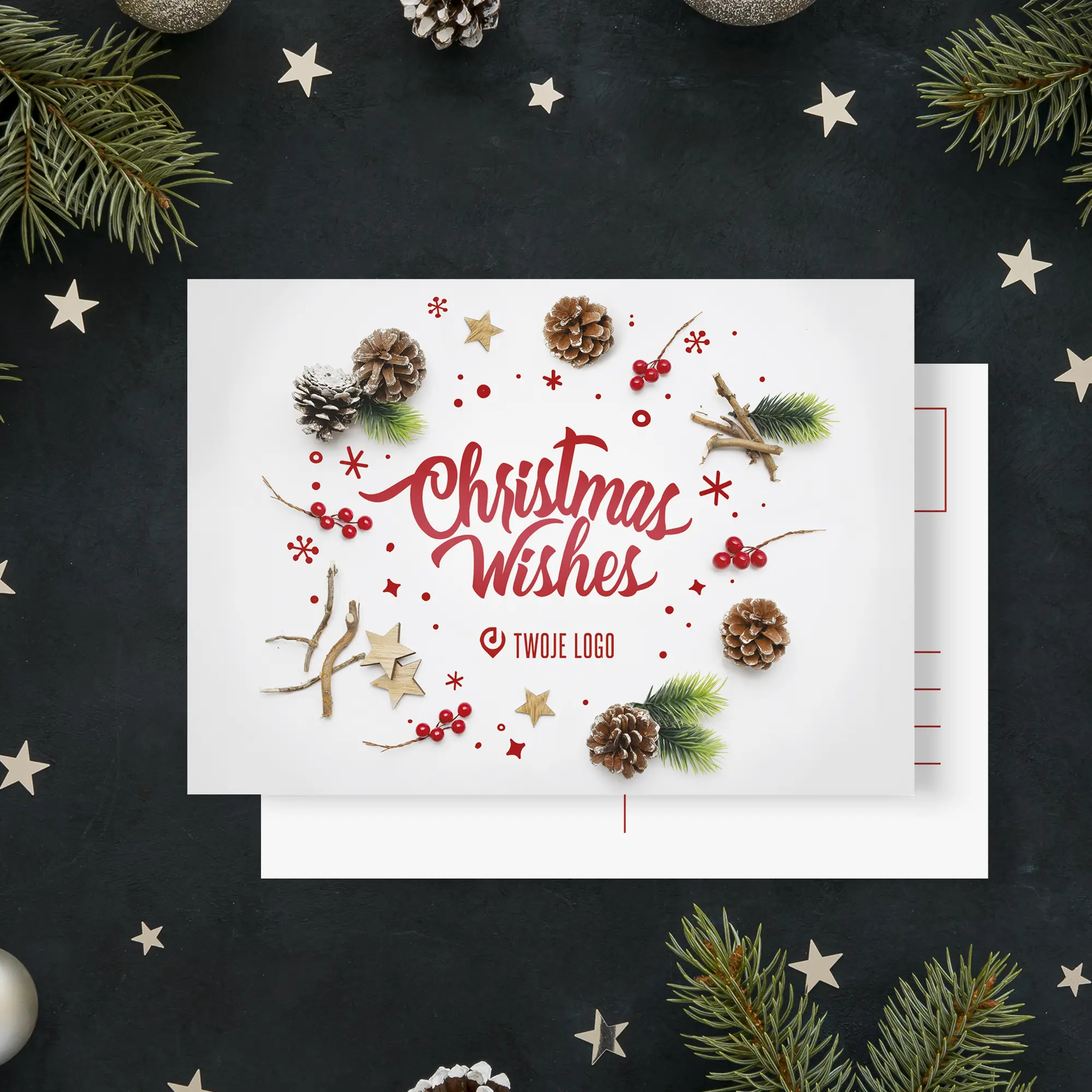 Personalizowane pocztówki świąteczne z miejscem na logo Twojej firmy.