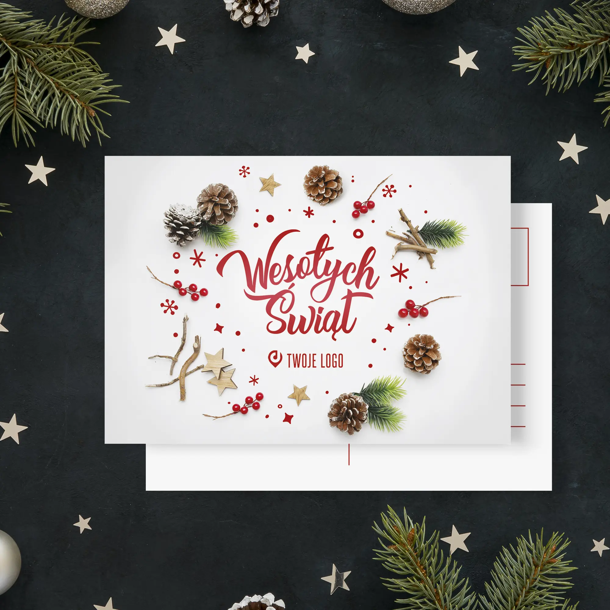 Firmowe pocztówki świąteczne z logo GWIAZDKOWA SZYSZKA