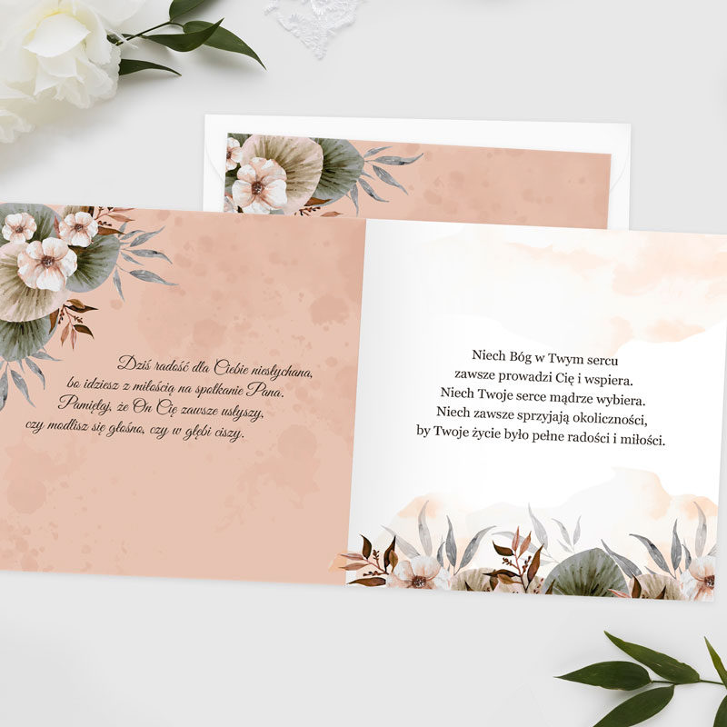 Kartka pamiątka komunii KREMOWE KWIATY z życzeniami
