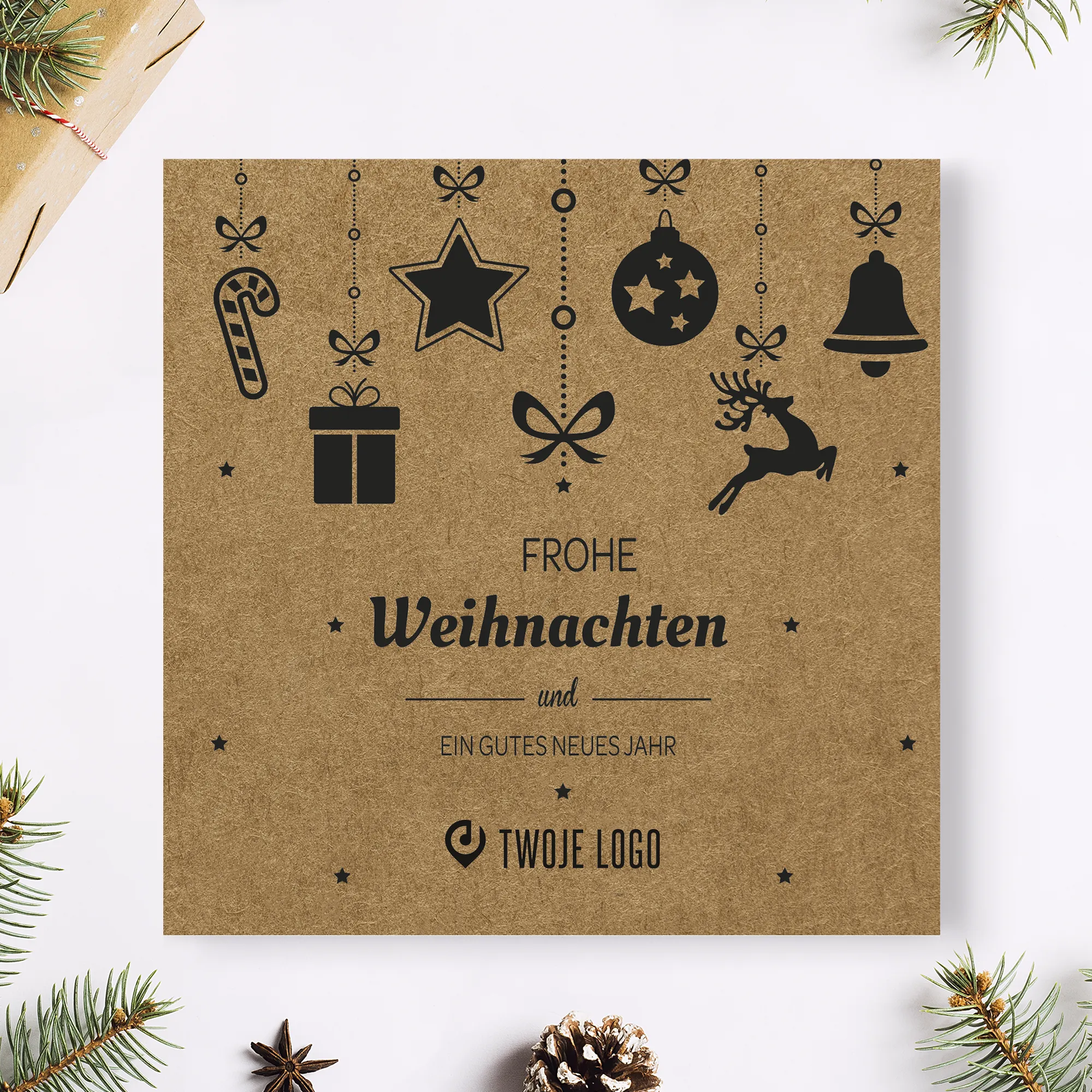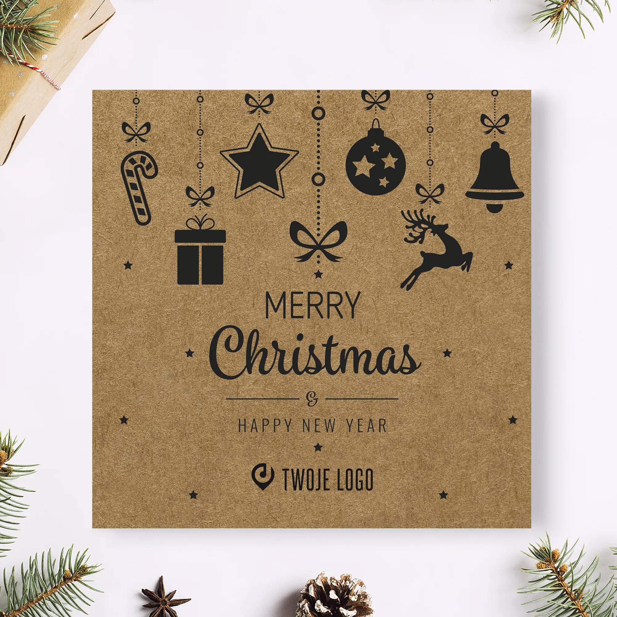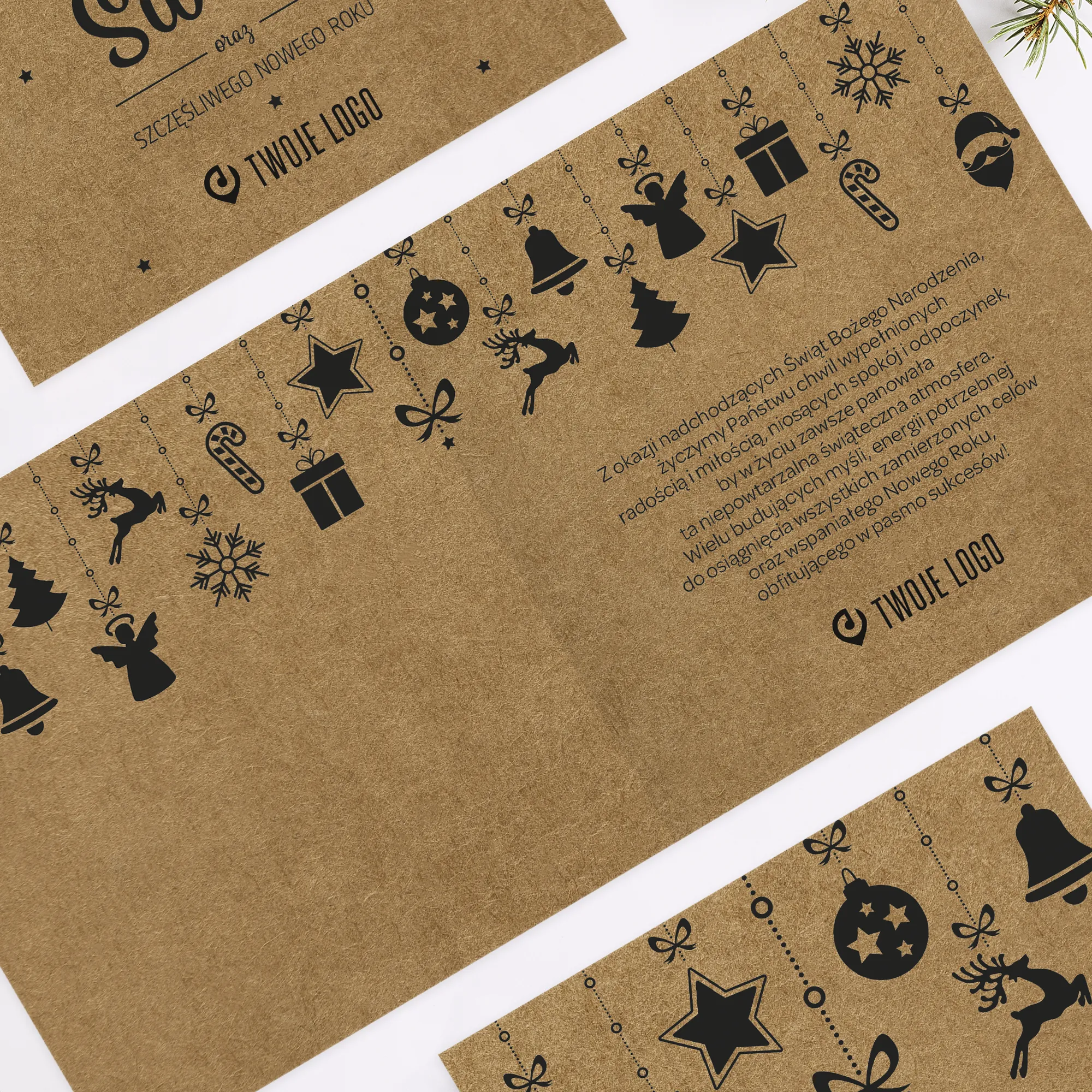 Personalizowane kartki świąteczne z miejscem na logo Twojej firmy.