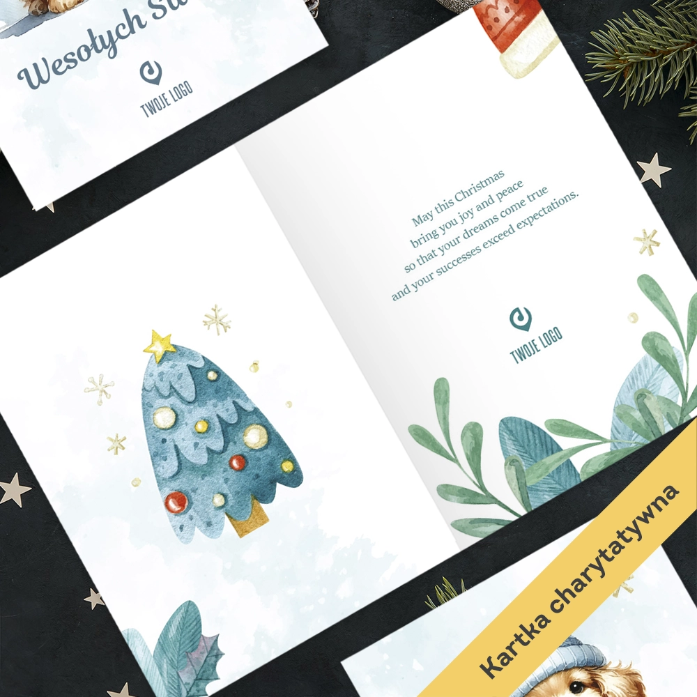 kartki świąteczne to idealna opcja dla firm, które chcą łączyć tradycję świąteczną z realnym wpływem na los zwierząt.