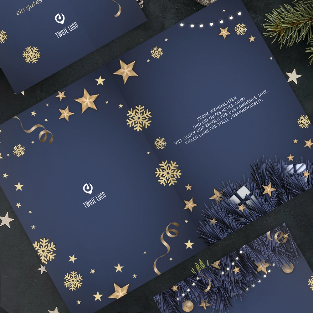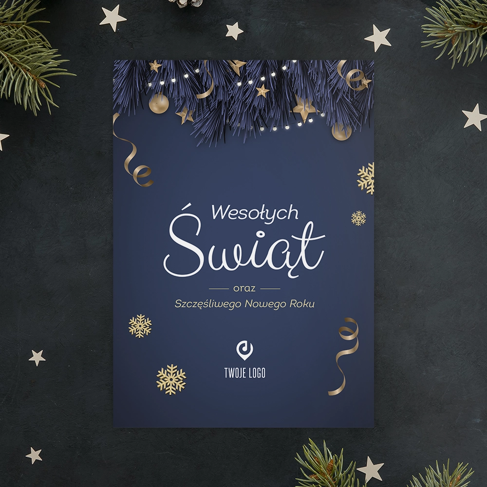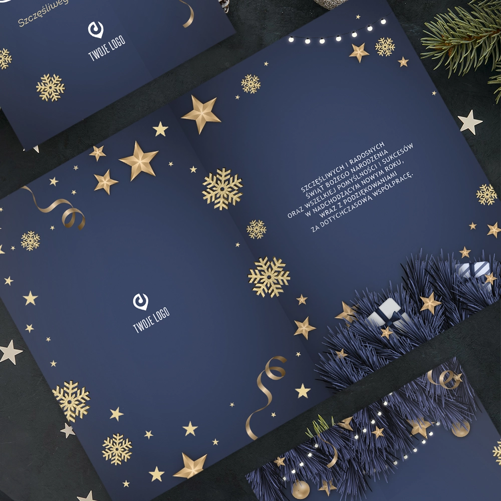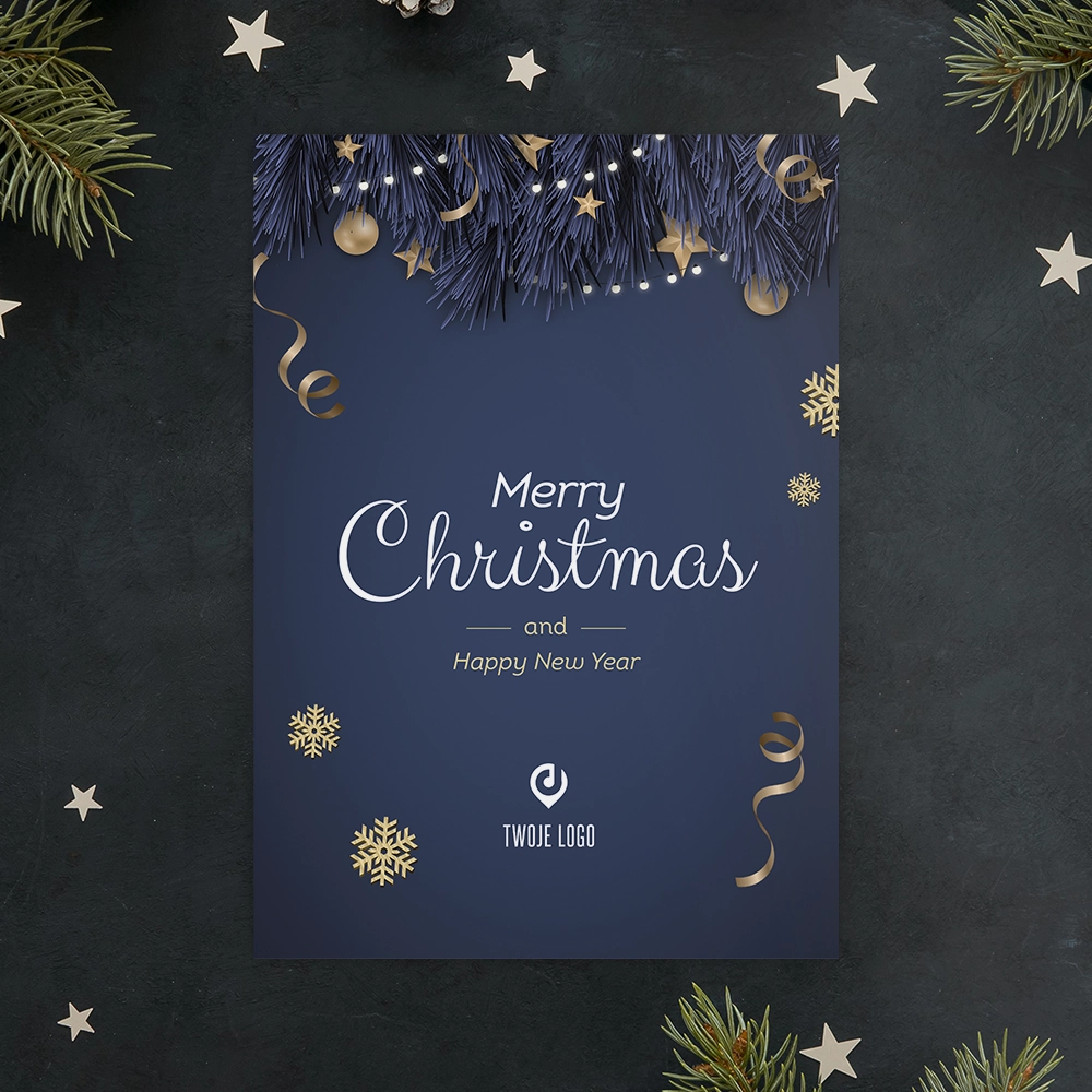 Kartki świąteczne firmowe GRANATOWA ELEGANCJA z Twoim logo