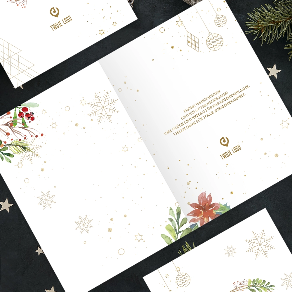 Tworzenie kart świątecznych z logo firmy – treści na kartce