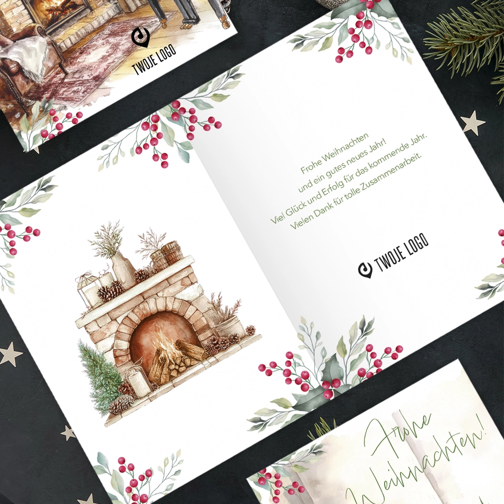 Kartki świąteczne firmowe z logo MAGIA KOMINKA