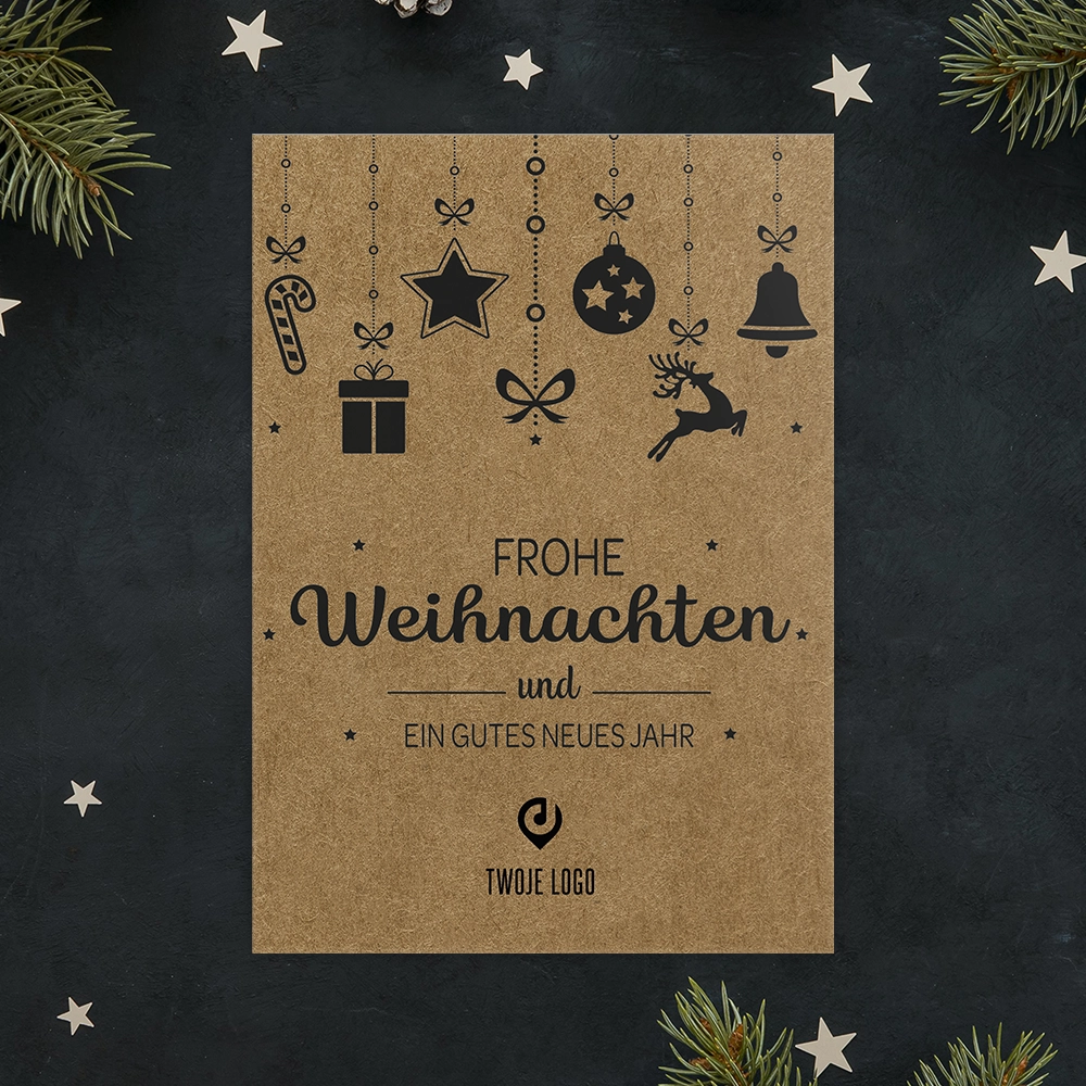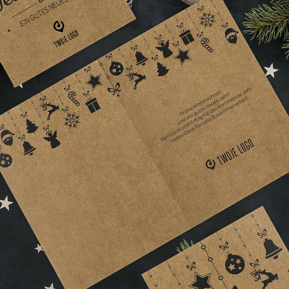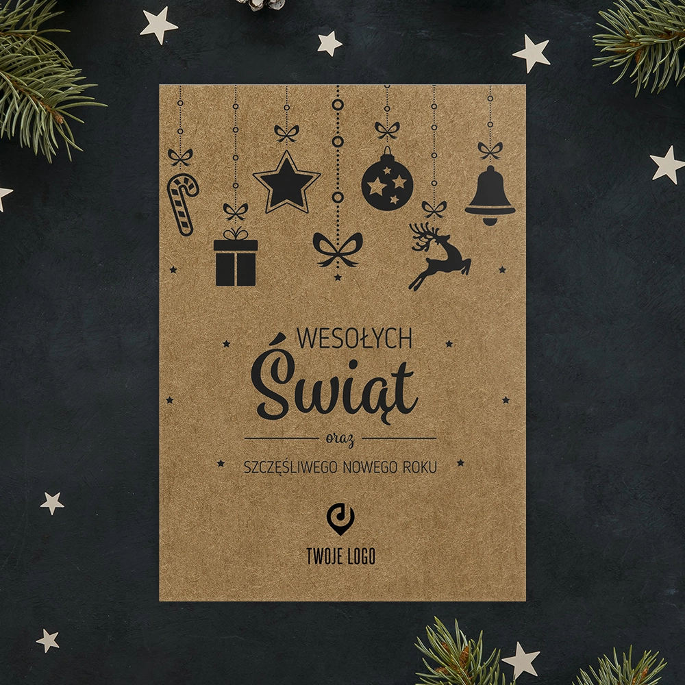 Kartka świąteczna WISZĄCE DEKORACJE ECO z Twoim logo