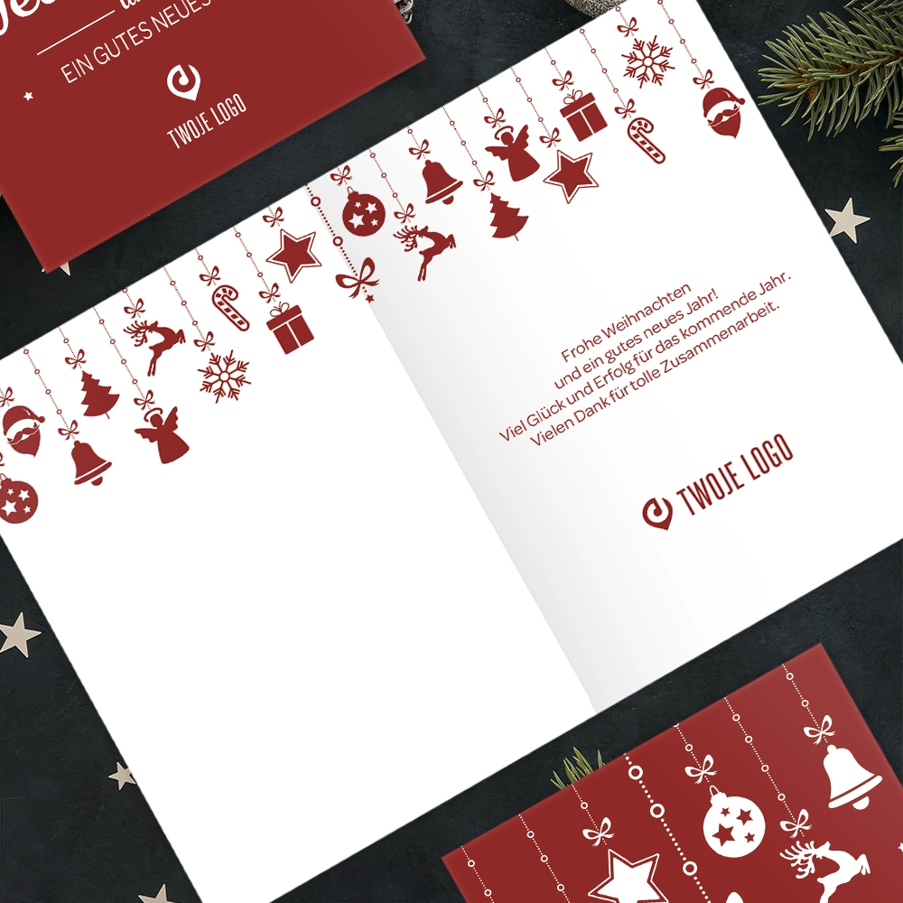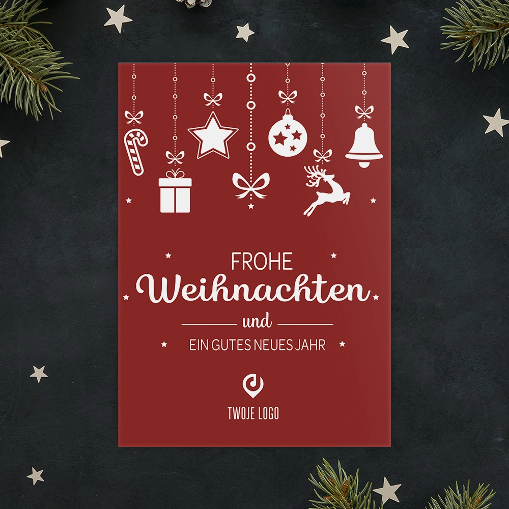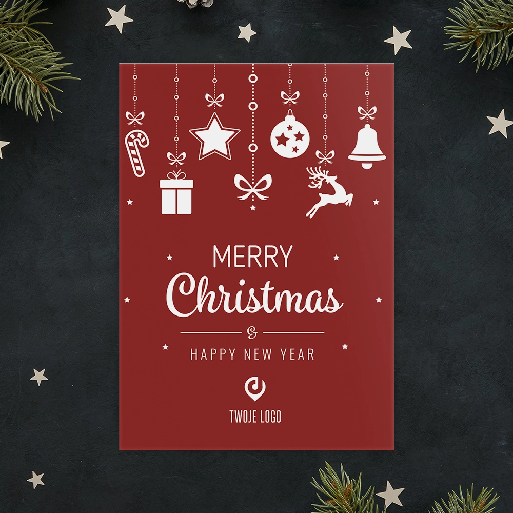 Kartka świąteczna WISZĄCE DEKORACJE z Twoim logo