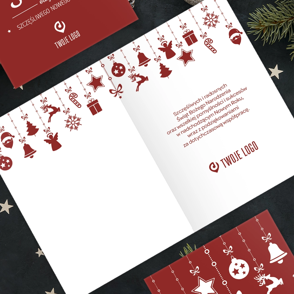 Kartki świąteczne firmowe z logo WISZĄCE DEKORACJE