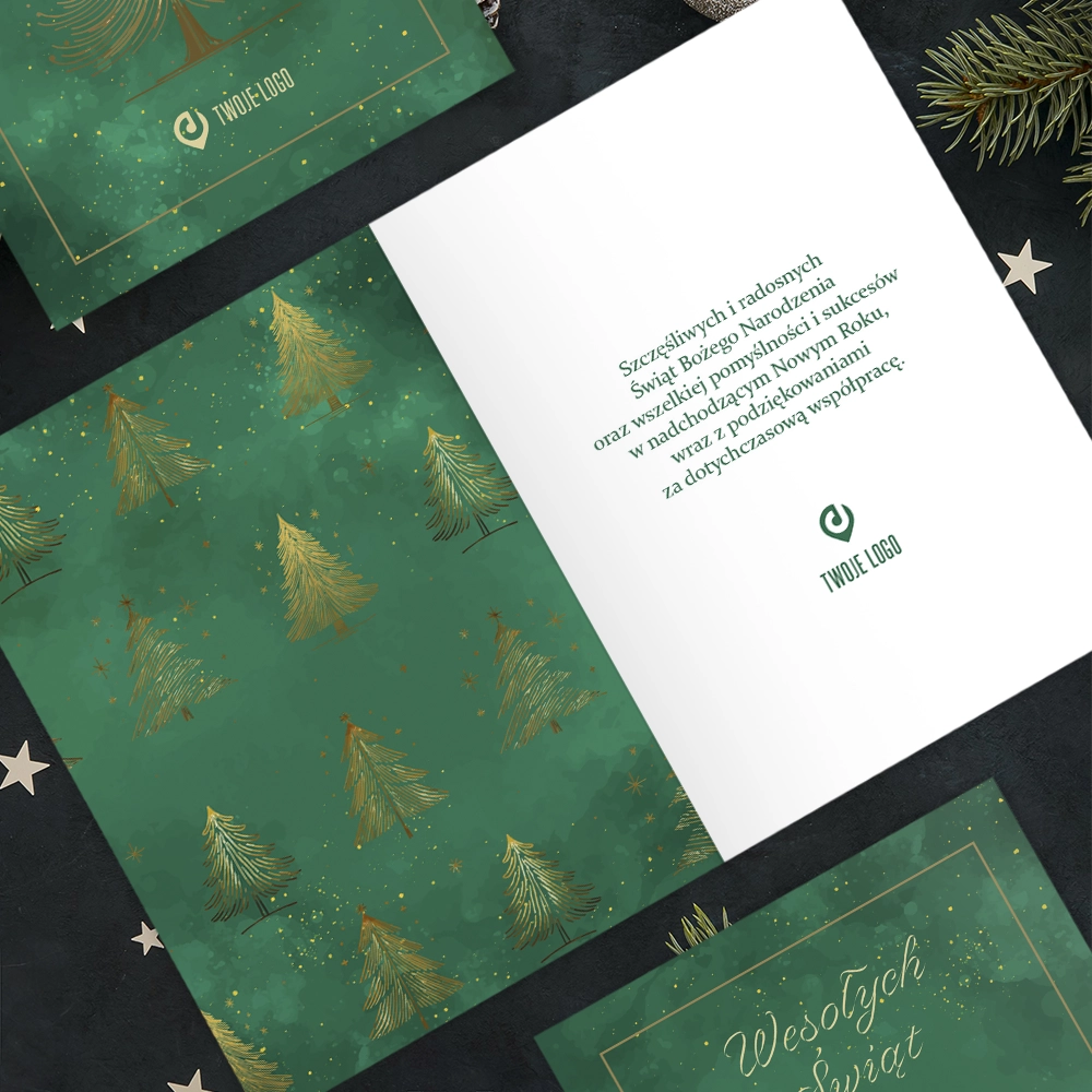• Kartki świąteczne firmowe z logo ZIELONA ELEGANCJA
