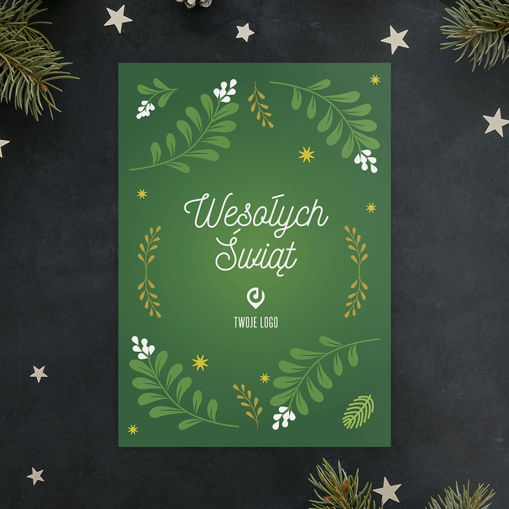 Kartka świąteczna ZIELONE GAŁĄZKI z Twoim logo
