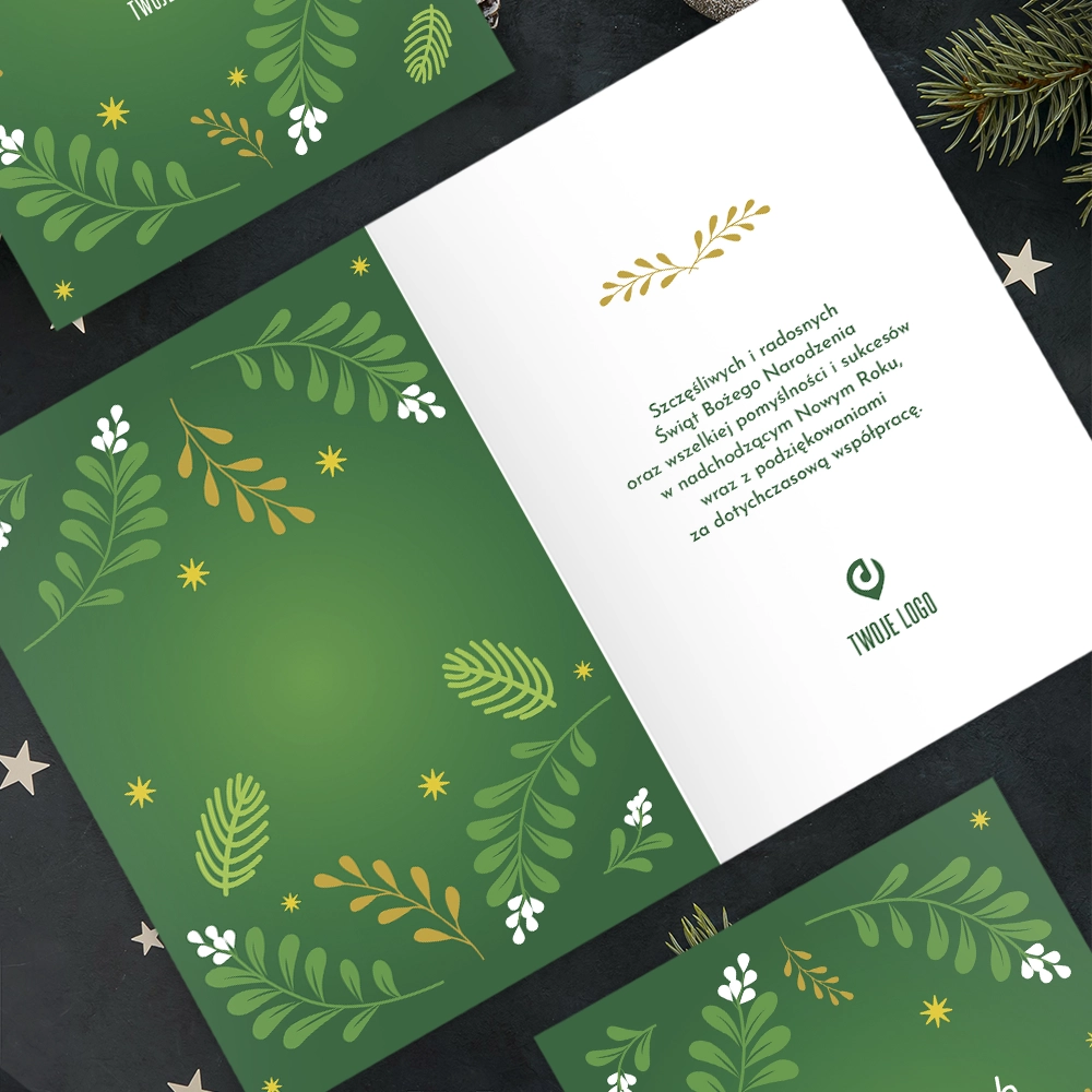 • Kartki świąteczne firmowe z logo ZIELONE GAŁĄZKI