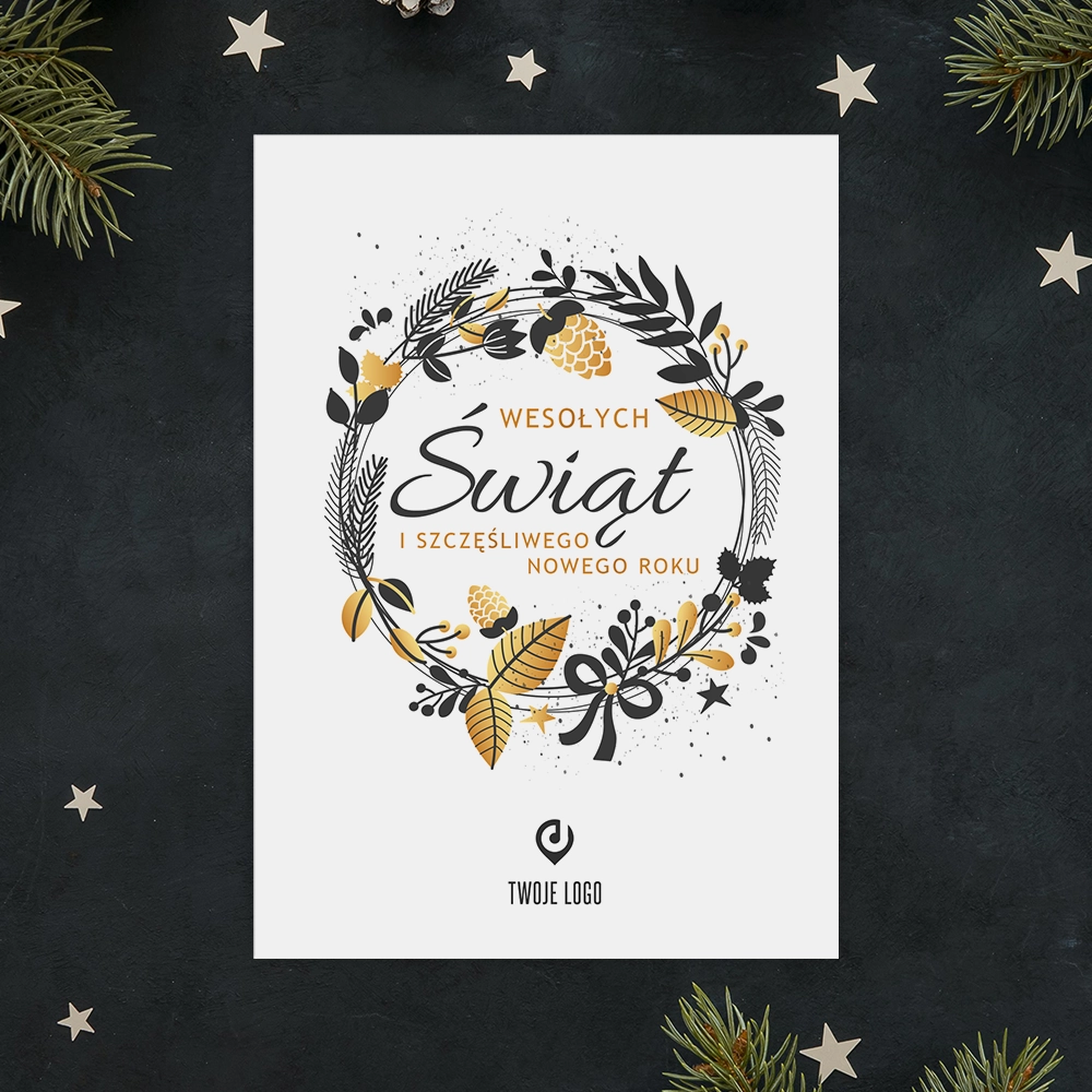 Kartki świąteczne firmowe z logo ZŁOTA SZYSZKA