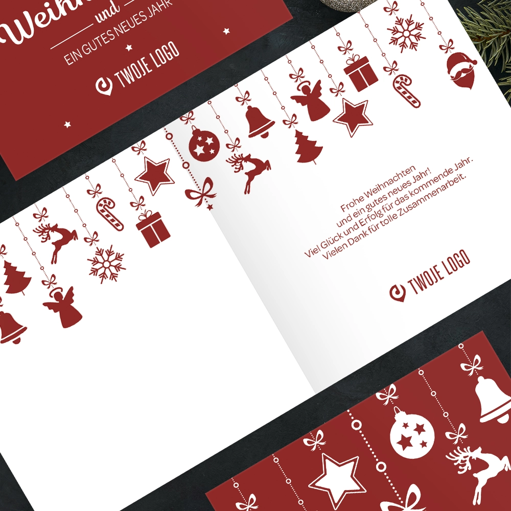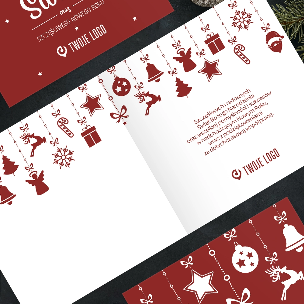 Personalizowane kartki świąteczne z miejscem na logo Twojej firmy.