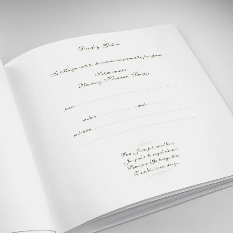 Upamiętnij wyjątkowy dzień Pierwszej Komunii Świętej z naszą księgą gości oprawioną