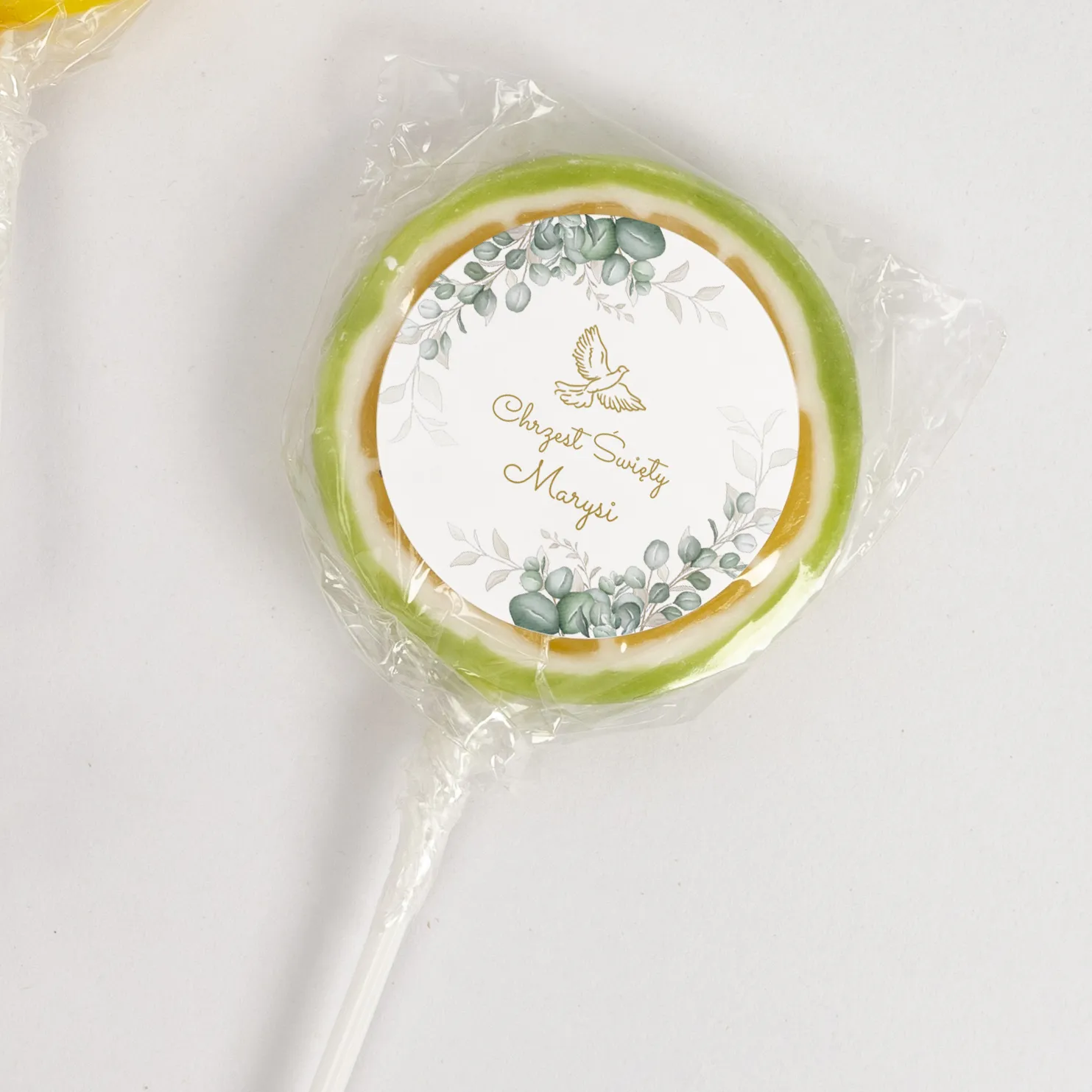 Lizaki personalizowane na chrzest z imieniem dziecka ZIELONY EUKALIPTUS