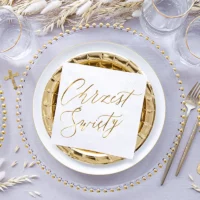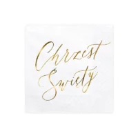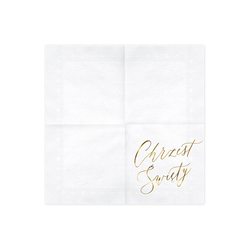 Eleganckie serwetki papierowe w kolorze białym z pięknym, złotym metalizowanym napisem Chrzest Święty.