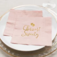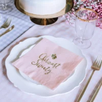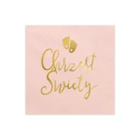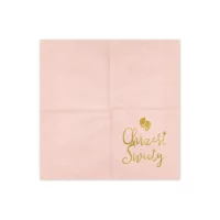 Eleganckie serwetki papierowe w kolorze jasnoróżowym z pięknym, złotym nadrukiem i napisem Chrzest Święty.