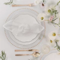 Eleganckie serwetki materiałowe z muślinu w kolorze białym.