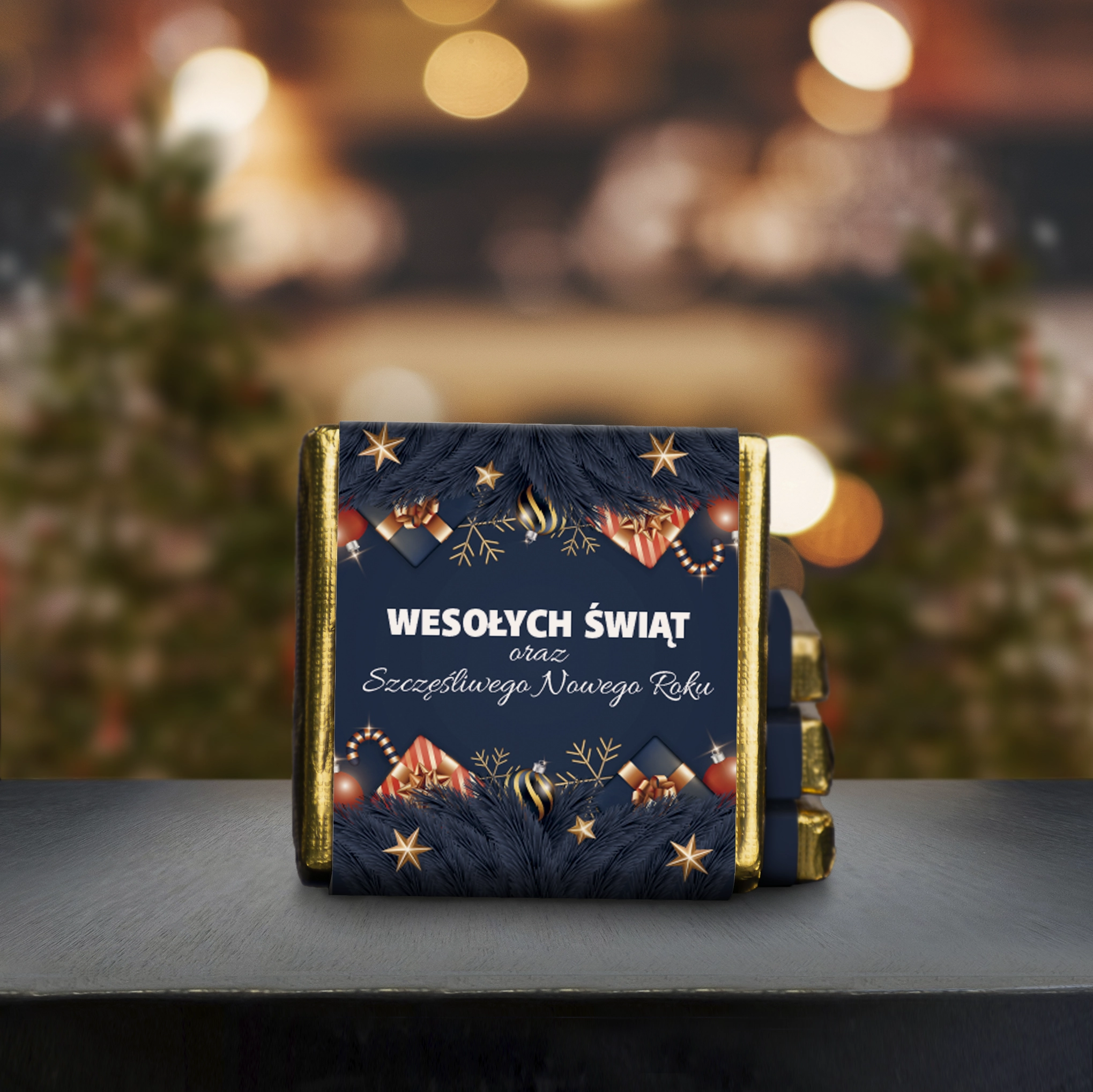 Świąteczne czekoladki z logo dla firm GRANATOWY SZYK