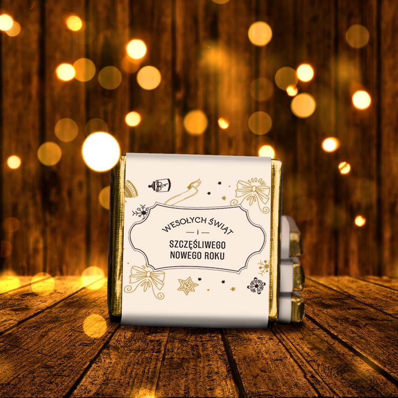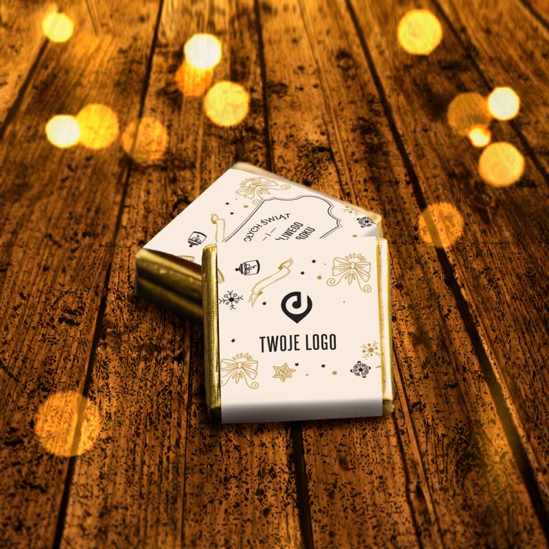 Świąteczne czekoladki z logo dla firm projektowane są w duchu magicznej wigilijnej atmosfery.