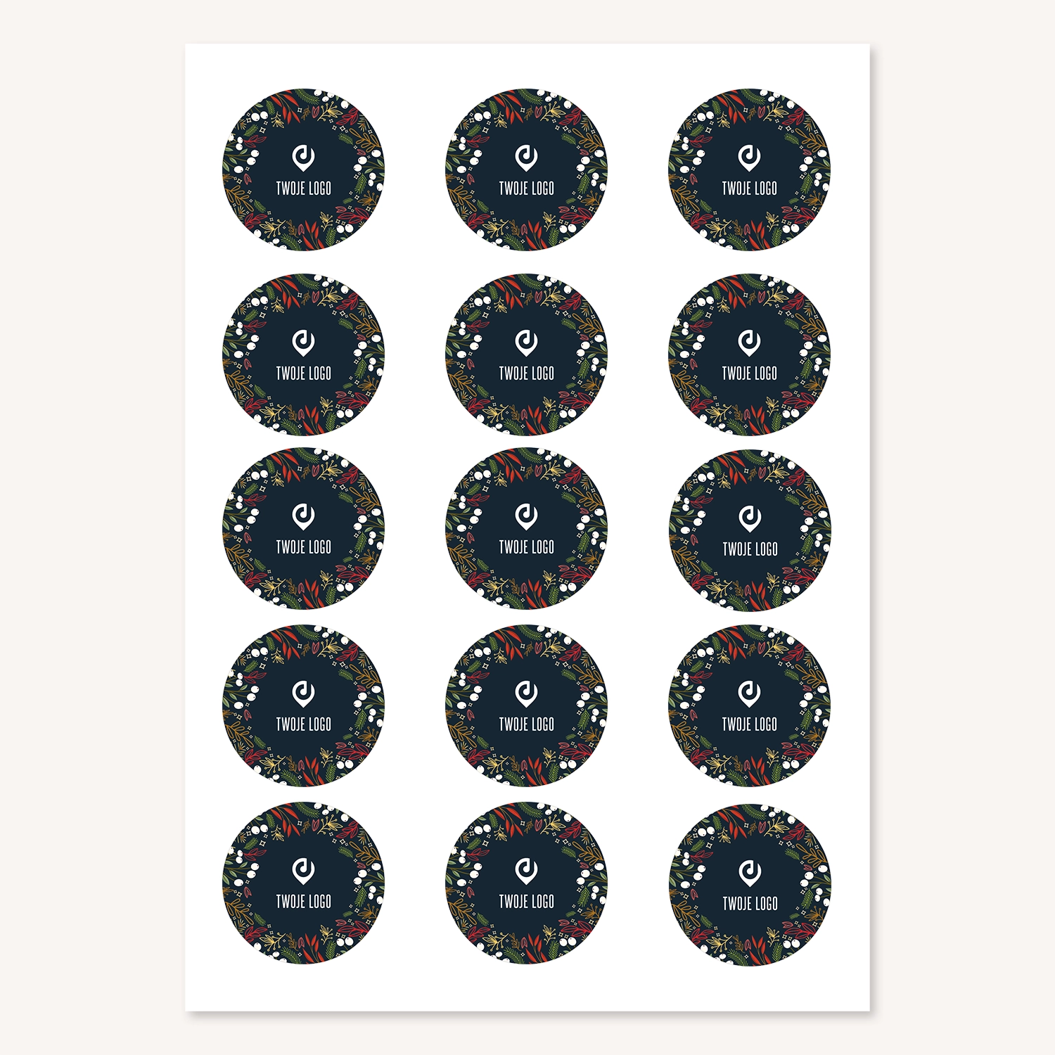 Świąteczne naklejki z logo – okrągłe 3 cm, 4 cm lub 5 cm