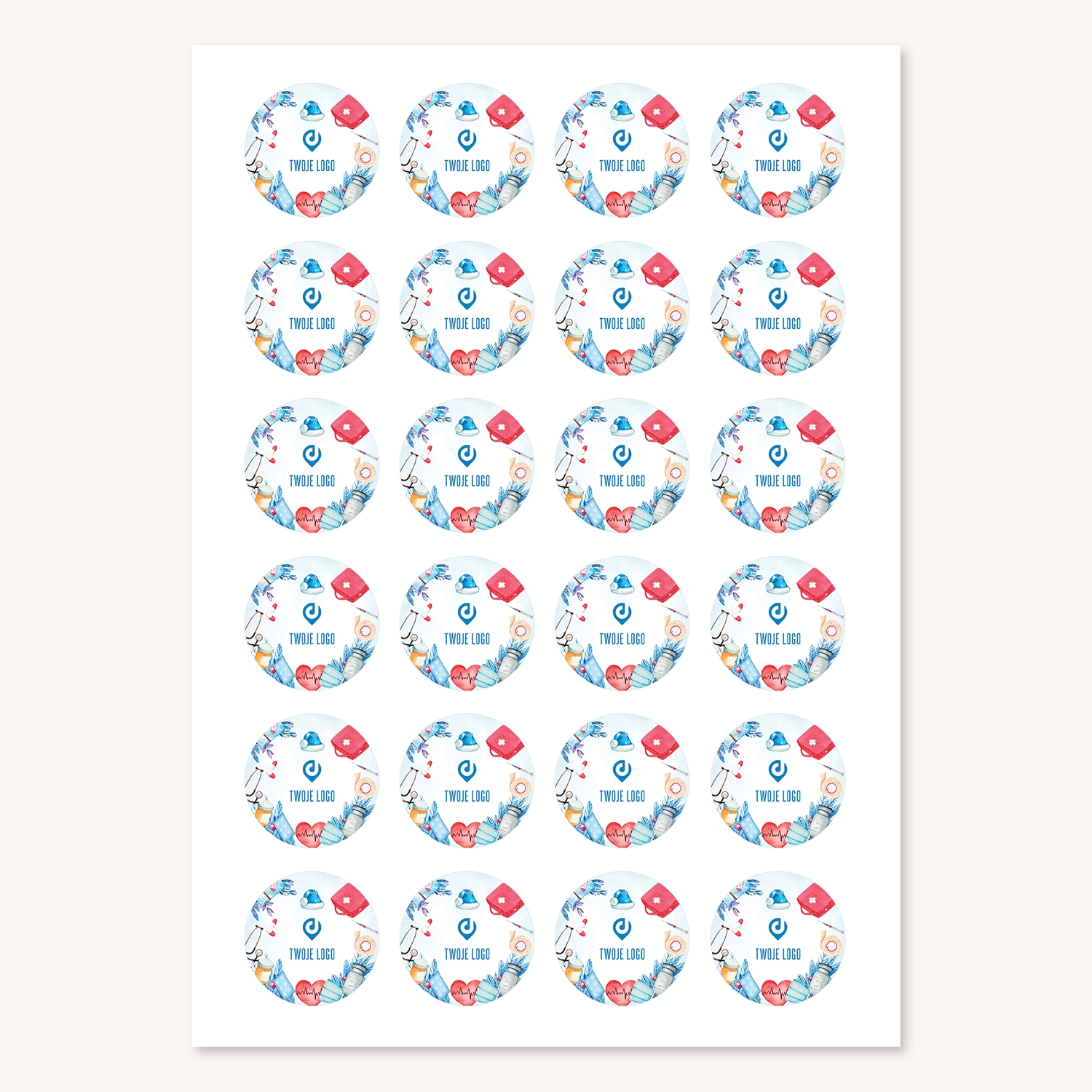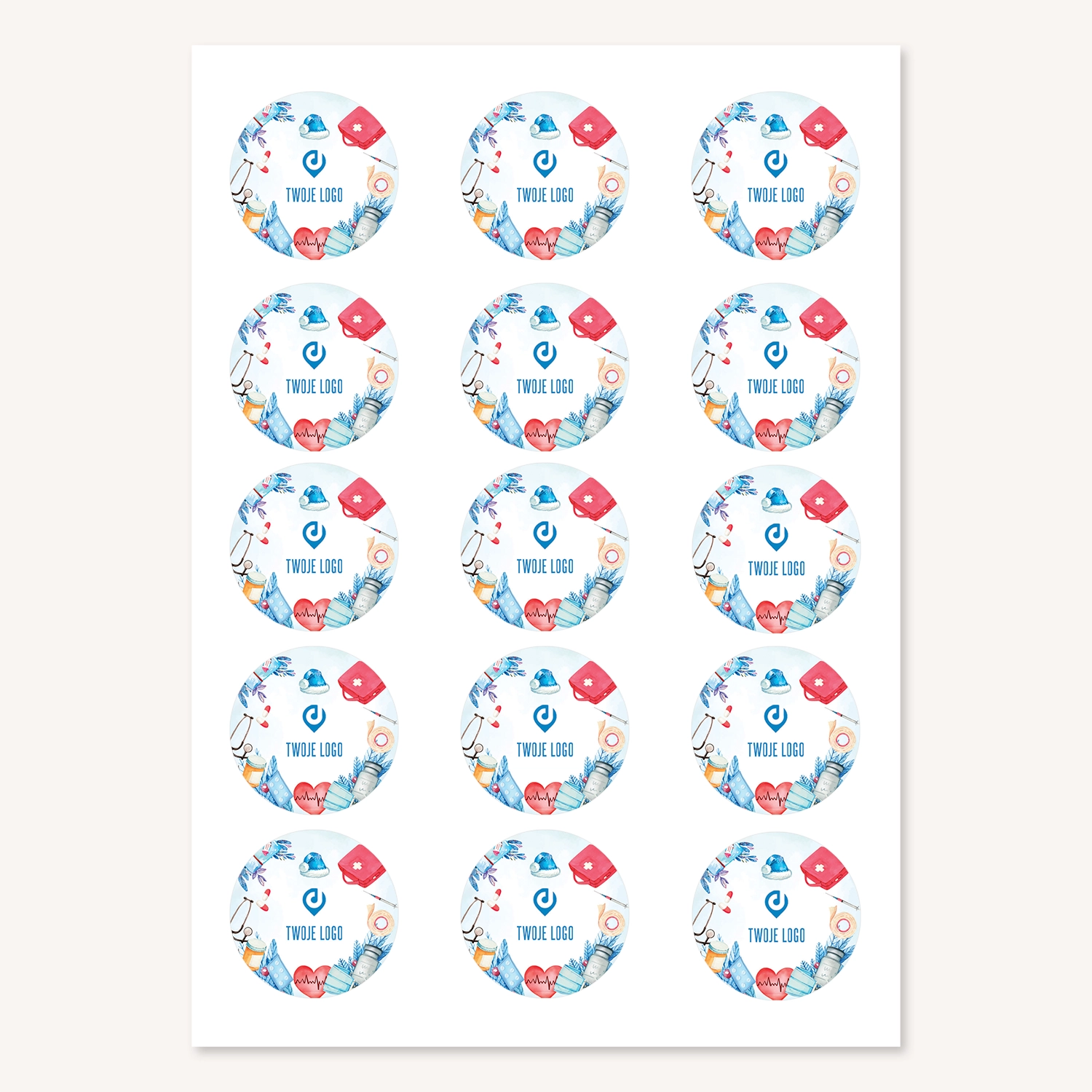 - Rozmiar średnicy pojedynczej naklejki, to 3 cm, 4 cm lub 5 cm – w zależności od wyboru