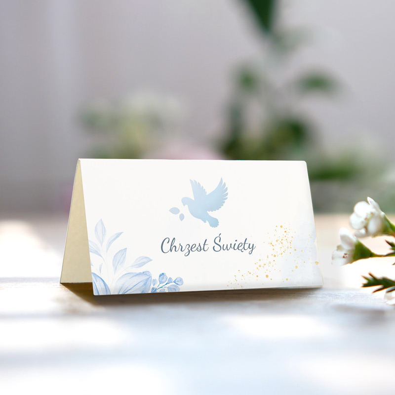 Winietki personalizowane na chrzest BŁĘKITNY GOŁĄBEK