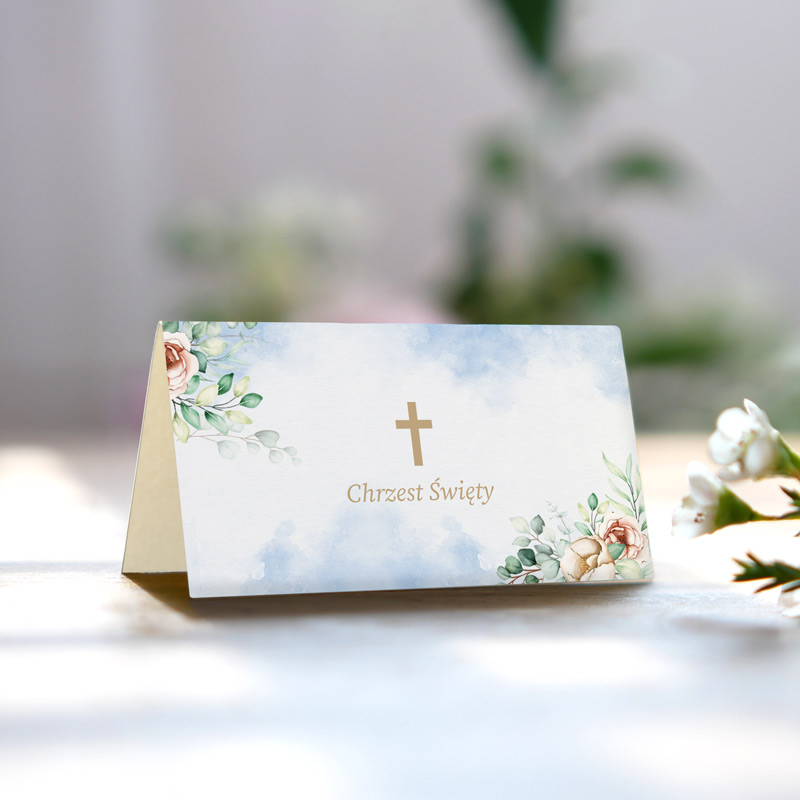 Winietki personalizowane na chrzest NIEBIESKA AKWARELA