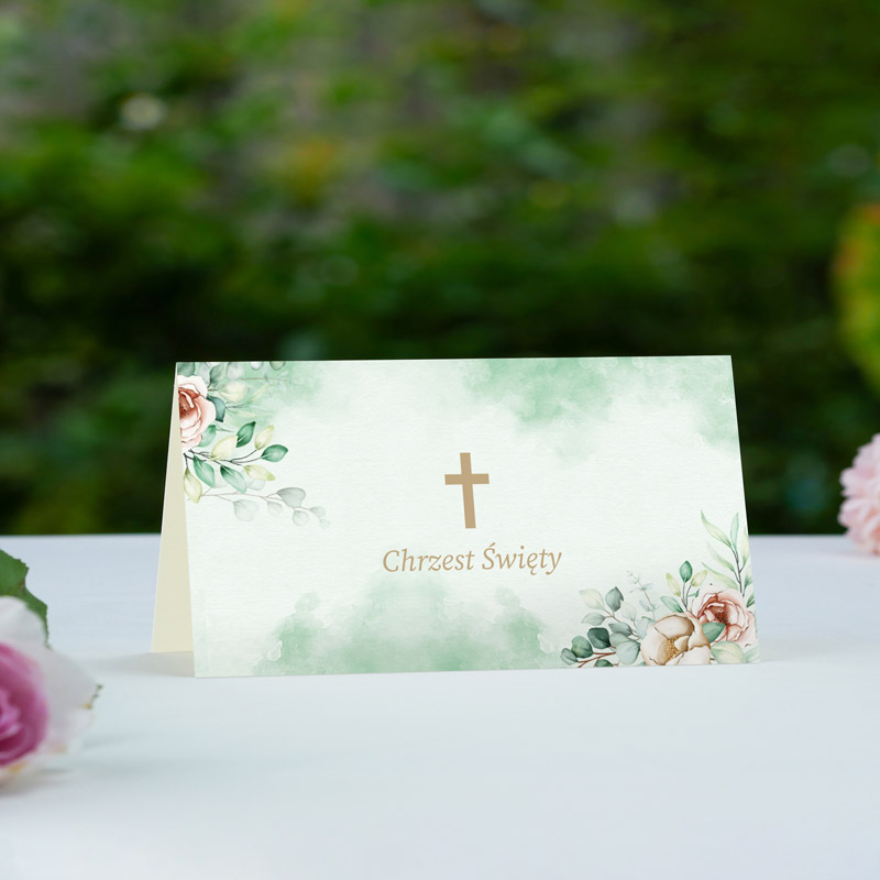 Winietki personalizowane na chrzest ZIELONA AKWARELA