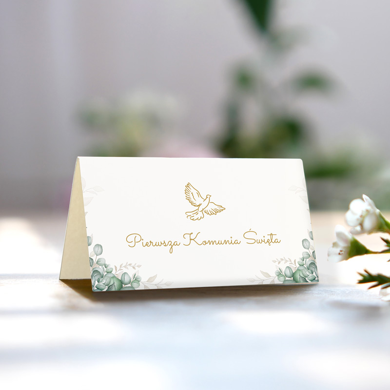 Winietki personalizowane na komunię ZIELONY EUKALIPTUS