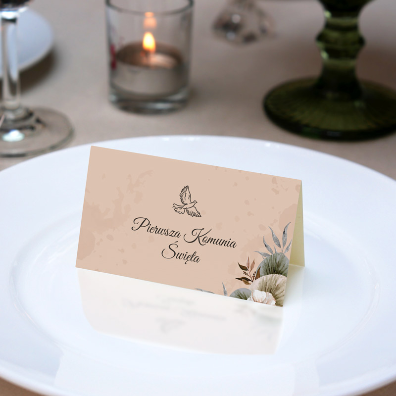 Winietki uniwersalne na komunię KREMOWE KWIATY 10 szt.